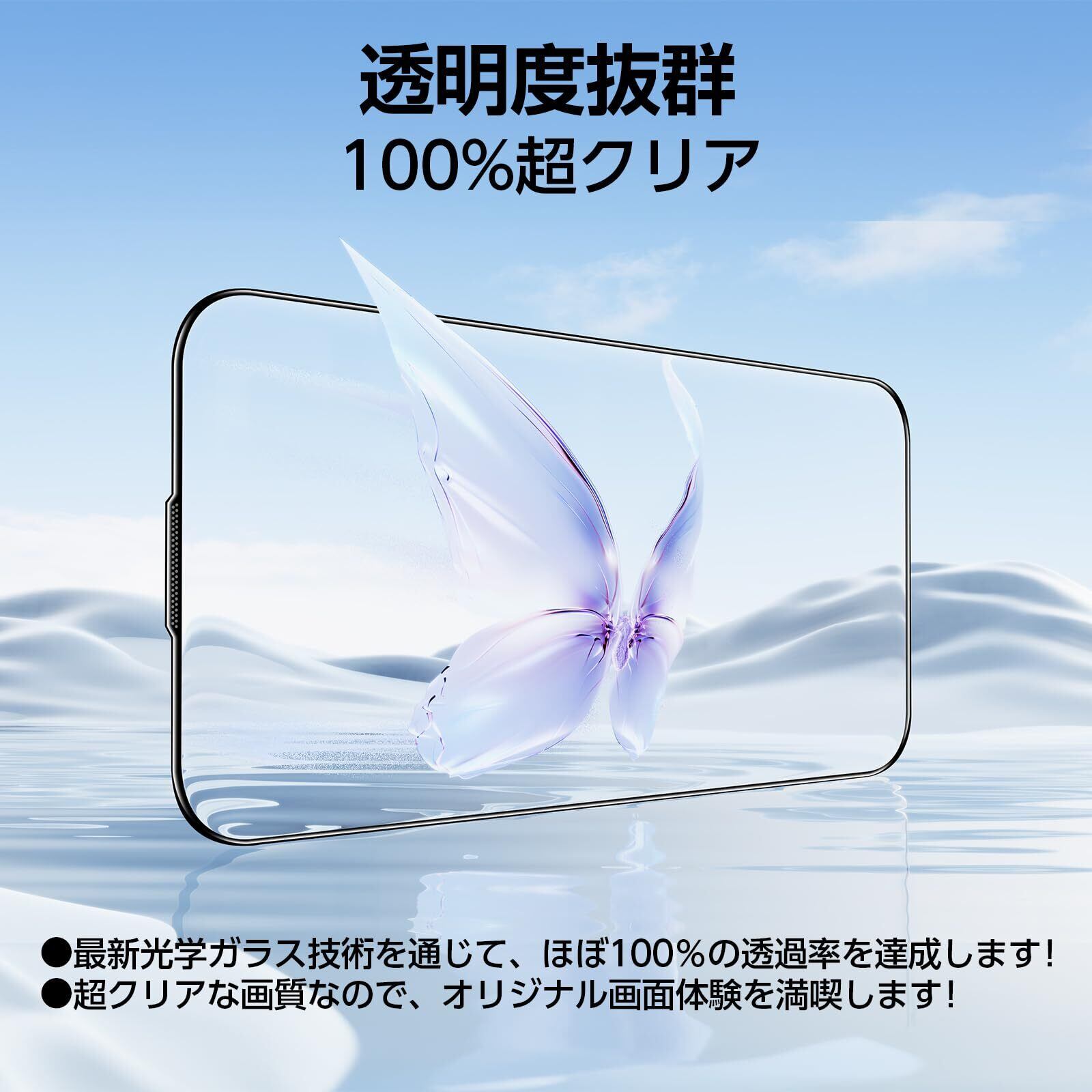 【高透過率で画面を守る】 新しい光学ガラスを採用しているため、画面の鮮明さを損ねず、映像の視聴にも影響を与えません。さらに、9H以上の硬度を誇る強化ガラスで、磨耗や衝撃からしっかり守ります、画面を強く保護できます。