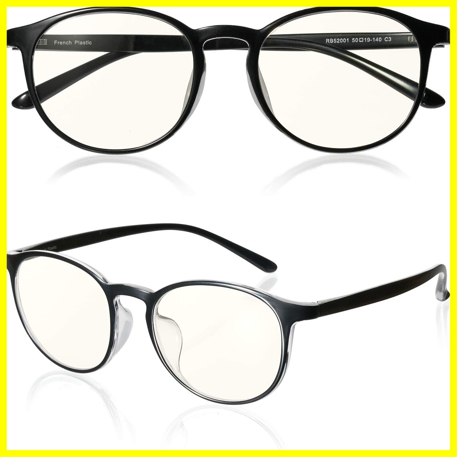 [ROTAKUMA] ブルーライトカット メガネ PC眼鏡 パソコン用 JIS規格 UVカット 超軽量14g ボストン型 おしゃれ 紫外線カット メンズ レディース ユニセックス 度なし 伊達めがね (ブラック/クリア)