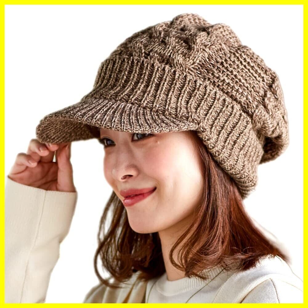 【耳まであったか】ミックス感のある糸でざっくり編まれた、ふんわりシルエットがかわいいツバ付きのキャスケット風ニット帽。いつもの洋服にも合わせやすいデザインでおしゃれに寒さ対策!