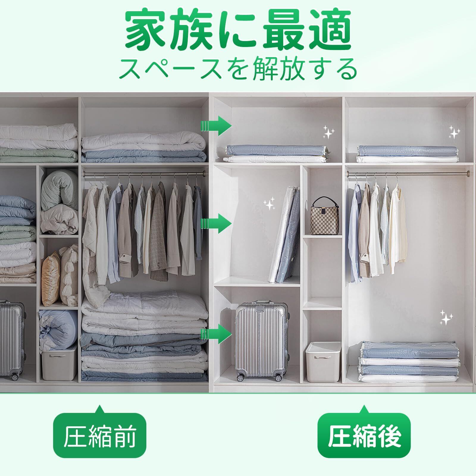 スペースの節約:サイズ:80 100 cm(6 枚) 真空圧縮袋は家庭の保管問題の解決に最適です。真空圧縮技術により、衣類、寝具、掛け布団、毛布、ぬいぐるみ、枕などをしっかりと圧縮することができます。 収納スペースを節約し、ワードローブやスーツケースをより整理整頓します