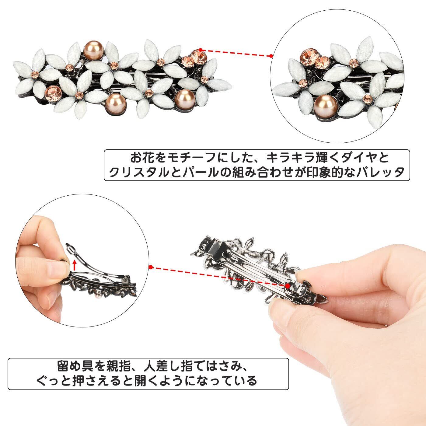 mefeny ヘアクリップ バレッタ パール お花 キラキラ 髪留め 髪飾り ヘアアクセサリー レディース 結婚式 パーティー 入学式 お呼ばれ 卒業式 (白)