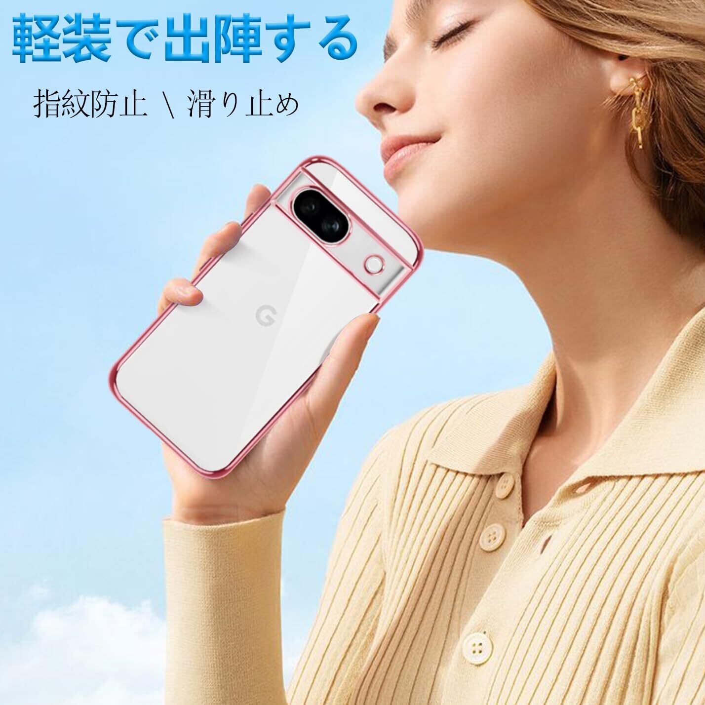 【オシャレ・シンプル】クリアな背面高い透明感を持ち、ケース四隅とボタン部分メッキ加工を応用し、シンプルで高級感溢れて、トレンディなメッキデザインは精緻されたライフスタイルを示します。超軽量薄型、Pixel8a本体とピッタリ密着しており、長く持っても手が疲れる感じもありません。