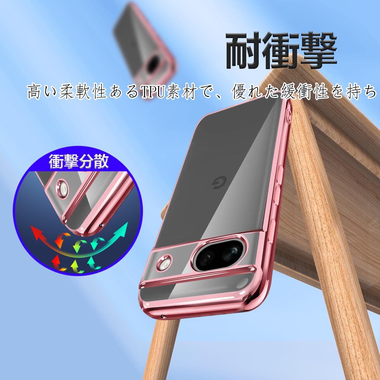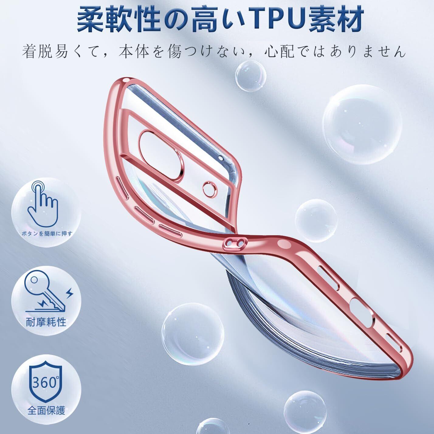 Google Pixel8a ケース クリア TPU 透明 薄型 軽量 グーグル ピクセル 8a スマホケース 耐衝撃 メッキ加工 ソフト 人気 ワイヤレス充電対応 (ローズゴールド)