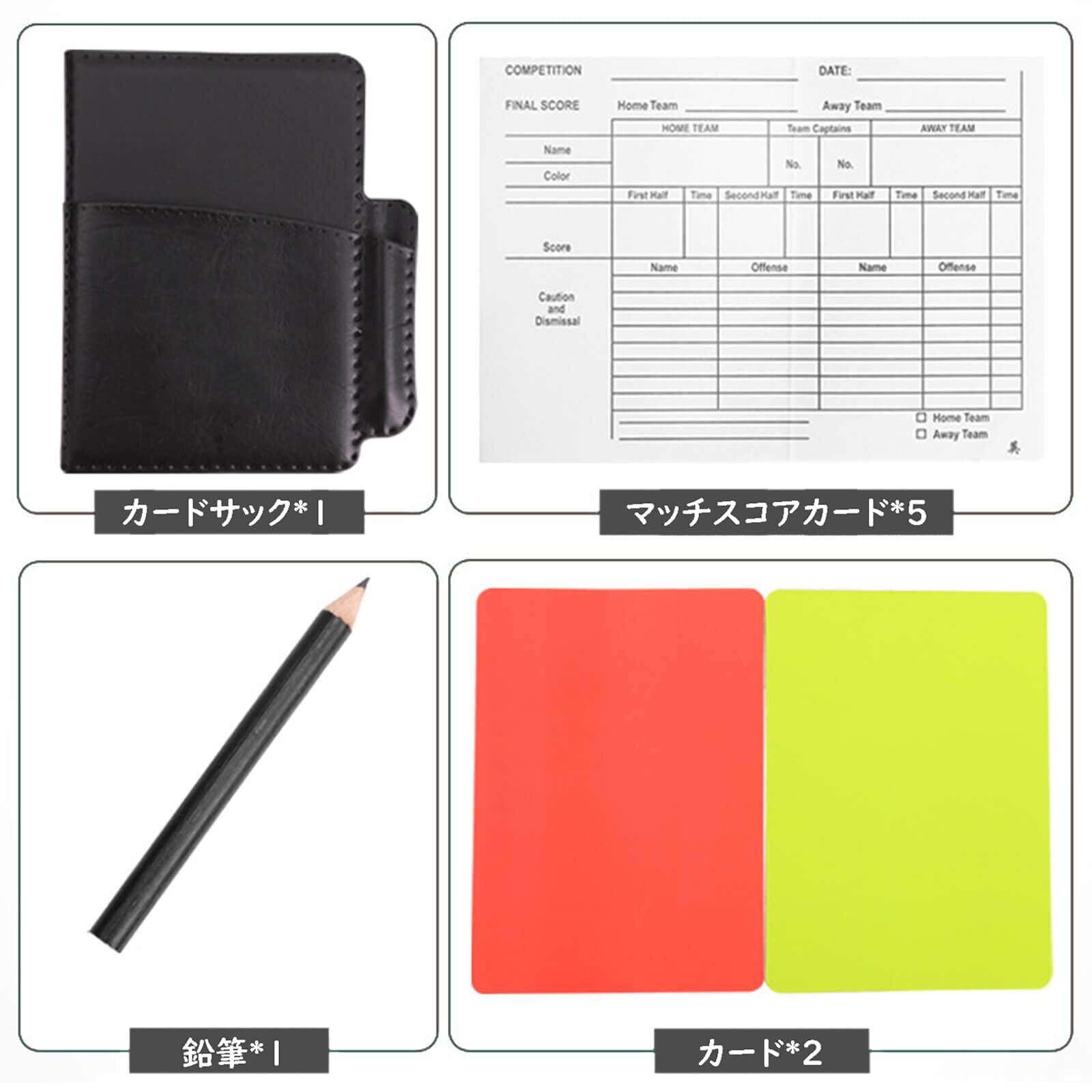【審判に最適】レフェリーカードセットには、レッドカード、イエローカード、鉛筆 (マッチスコアカード付き)、トスコイン、ストラップ付きメタルコーチホイッスルが含まれます。クラシックな組み合わせのデザインは、試合の審判に最適な製品です。