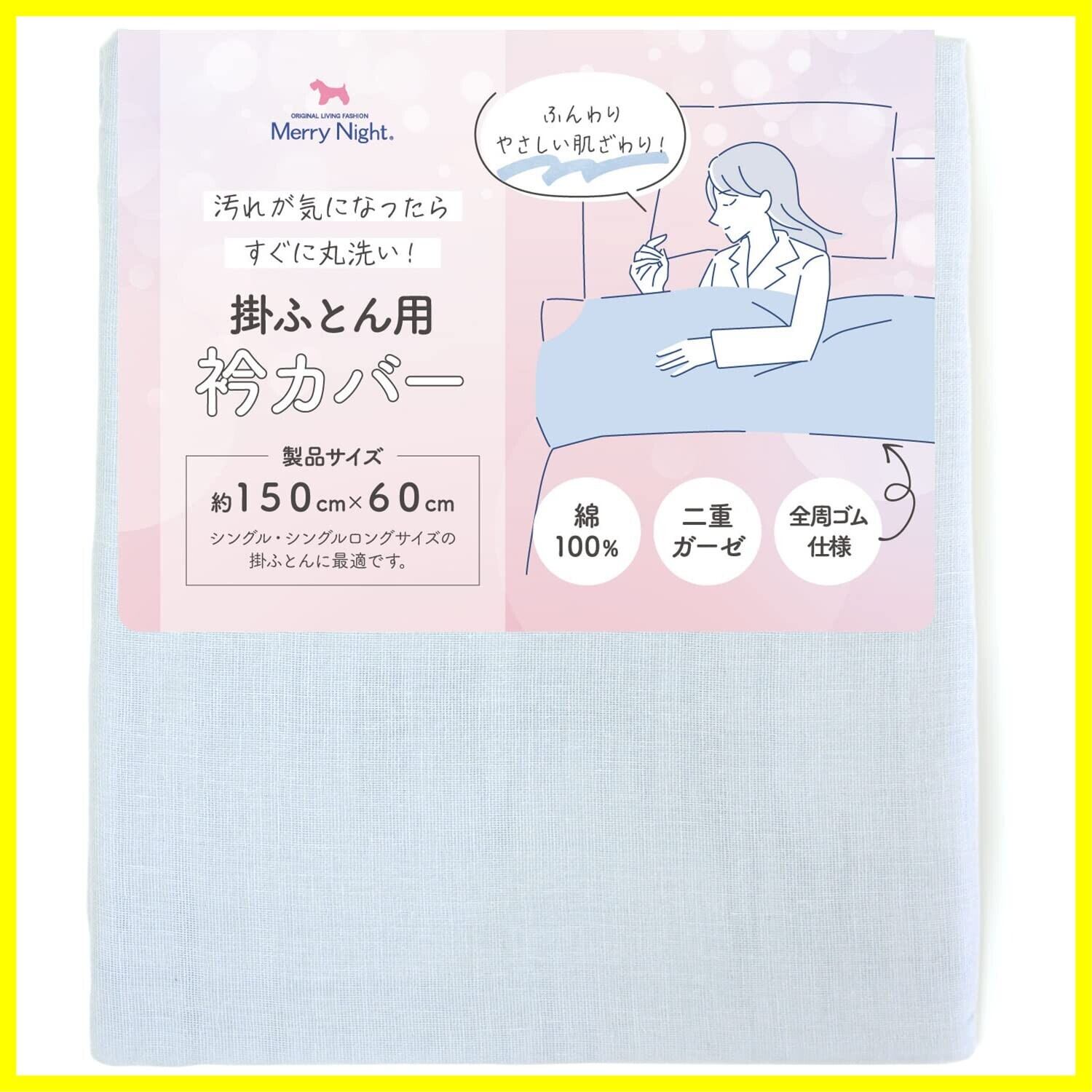 メリーナイト(Merry Night) 衿カバー 2重ガーゼ ブルー 約150×60cm (シングル・シングルロングサイズの掛け布団に最適)全周ゴム仕様 綿100% ふんわりやさしい肌ざわり 洗える EK1521-76