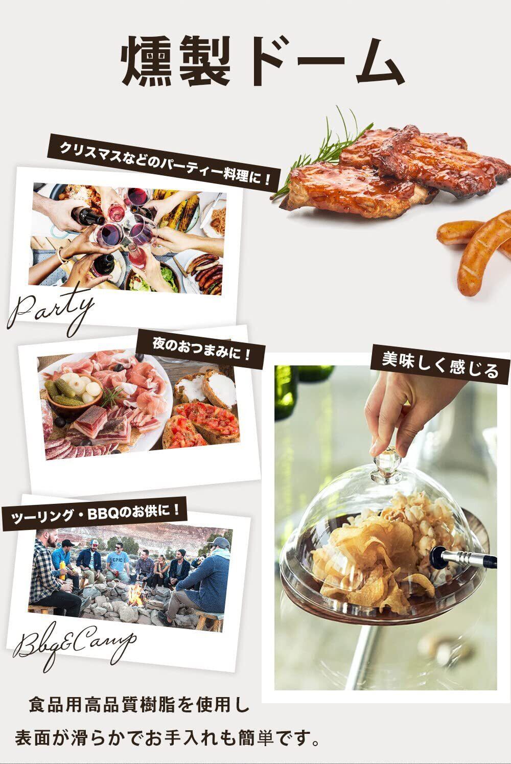 FRUNEP 燻製ドーム 透明樹脂シーリングカバー 簡易冷燻法/スモーキング