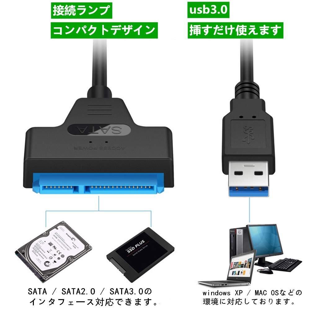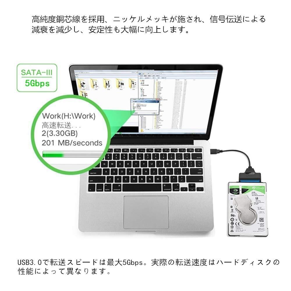 SATA-USB 変換ケーブル 2.5インチ SSD/HDD用 SATAケーブル 5Gbps 高速 SATA3 コンバーター USB3.0 2TB SSD/HDD 外付け 変換 コネクタ ハードディスク ポータブル(3.5インチのHDDは対応しておりません)