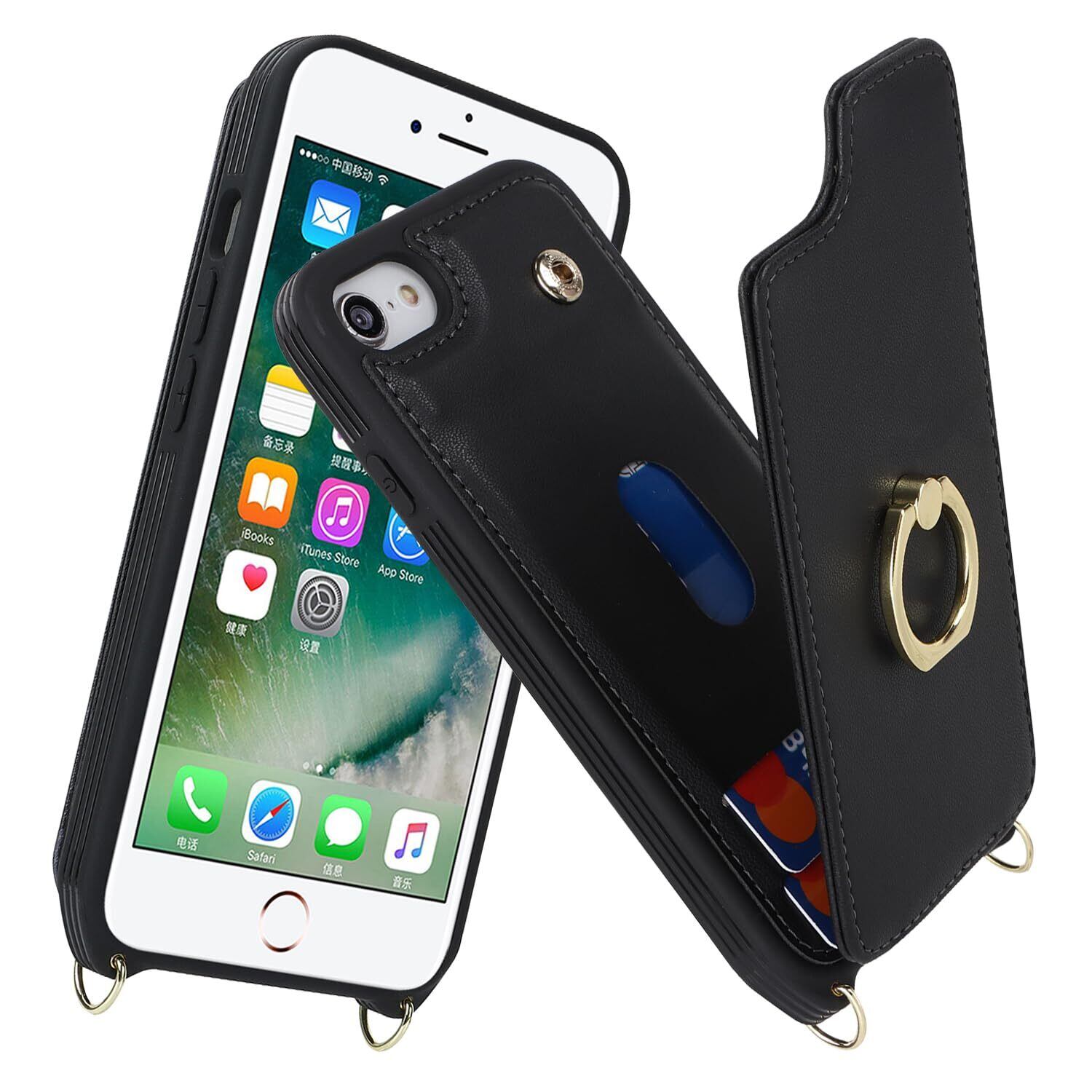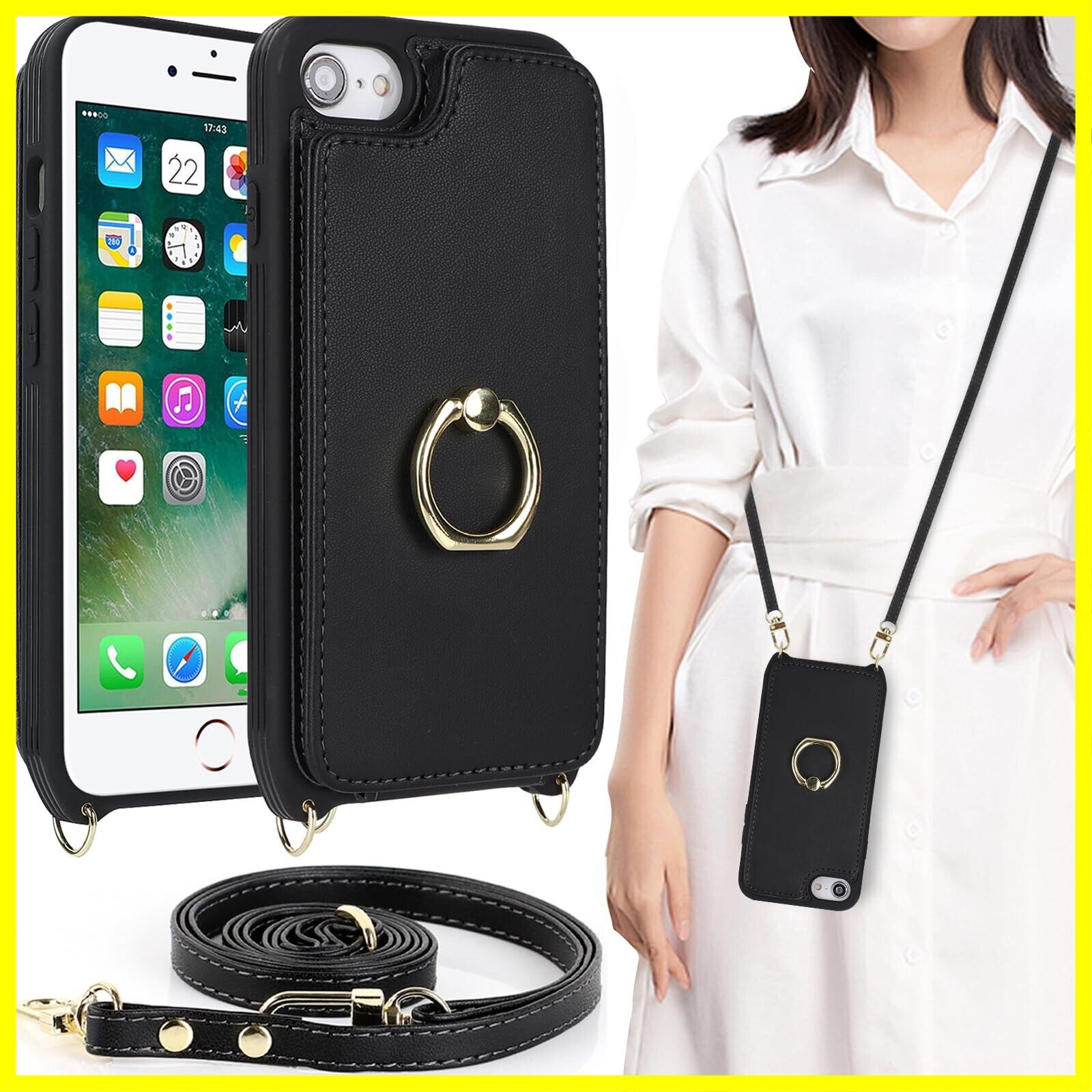 iPhone7 iPhone8 iPhoneSE 2020 2022 iPhone SE 第2世代 第3世代 ケース 手帳型 リング付き 上下開き ストラップ付き カバー ショルダー リング付きケース リング アイホン iPhone SE2 SE3 SE 2nd 3rd ケース 手帳型 ショルダーケース ストラップケース iPhoneSE2 iPhoneSE3 iPhone SE2 アイフォンSE 2020 アイフォンSE2 アイフォンSE3 ケース iPhoneSE 2nd 3nd スマホケース アイフォン 7 アイフォン8 ケース 手帳型 iphone8 ケース iphone8 手帳 アイフォン7 ケース iphone7 case カバー iPhone SE 第二世代 第三世代 ポシェット 適用 【iCoverCase】 カードケース カード収納 スナップ スタンド 肩がけ 首掛け 斜め掛け カード入れ 携帯カバー ブラック