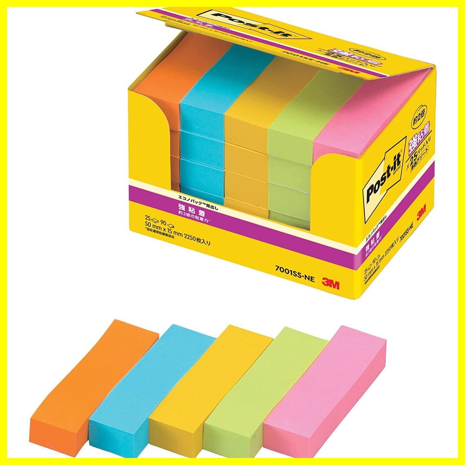 ポストイット 強粘着 付箋 長方形 見出し ネオンカラー 50×15mm 90枚×25パッド 7001SS-NE
