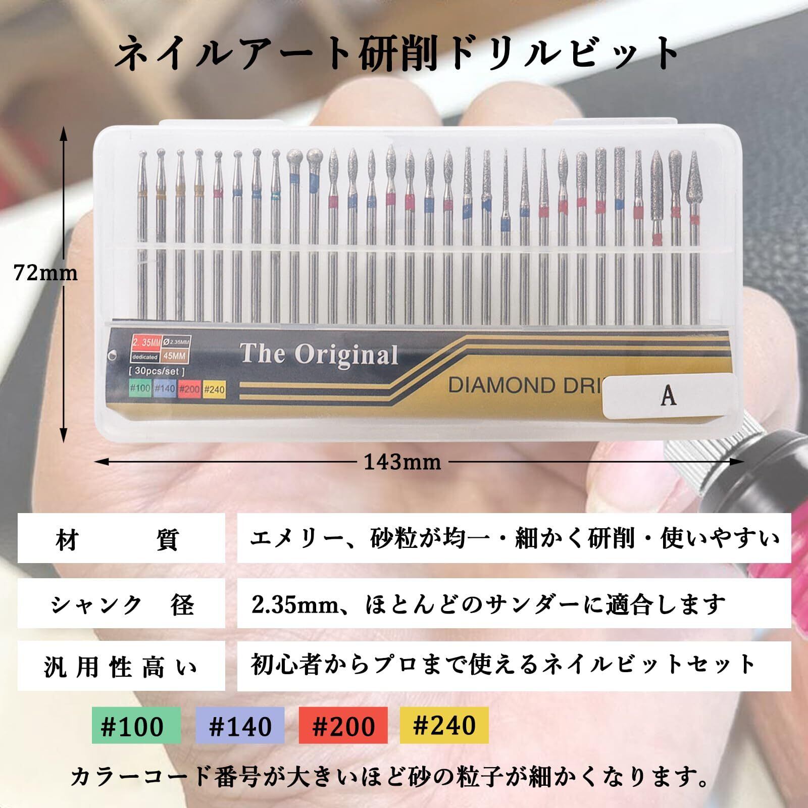 電動ネイルドリルビットは、ネイルアートやネイルケアに使用される工具の一部です。これは、ネイルドリル本体に取り付けられる小さな交換可能な部品であり、異なる形状や目的に合わせて選択できます。