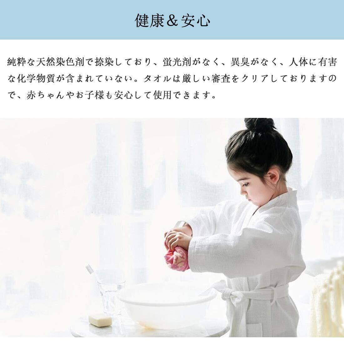 【安心なハンドタオル】厳選された100%天然綿の素材、蛍光染料は使用しておりません、優しく柔らかい肌触り、優れた通気性。安全で快適な使い心地が備わっているので、赤ちゃんやお子様に安心してご使用頂けます。高密度で織ったことで、洗濯しても変形しにくく、長持ちできる、色移りの心配もありません。普通のタオルよりも長く使います。