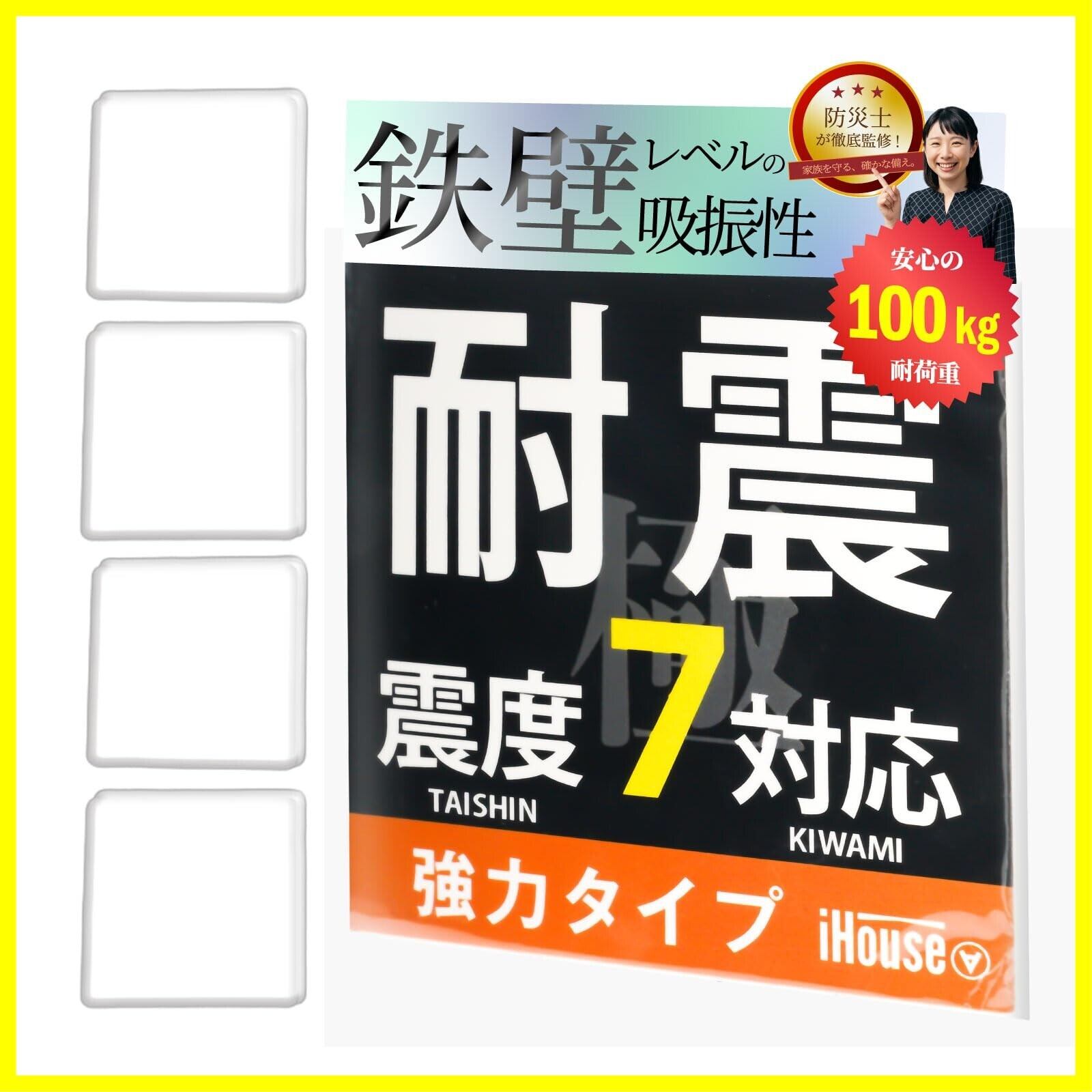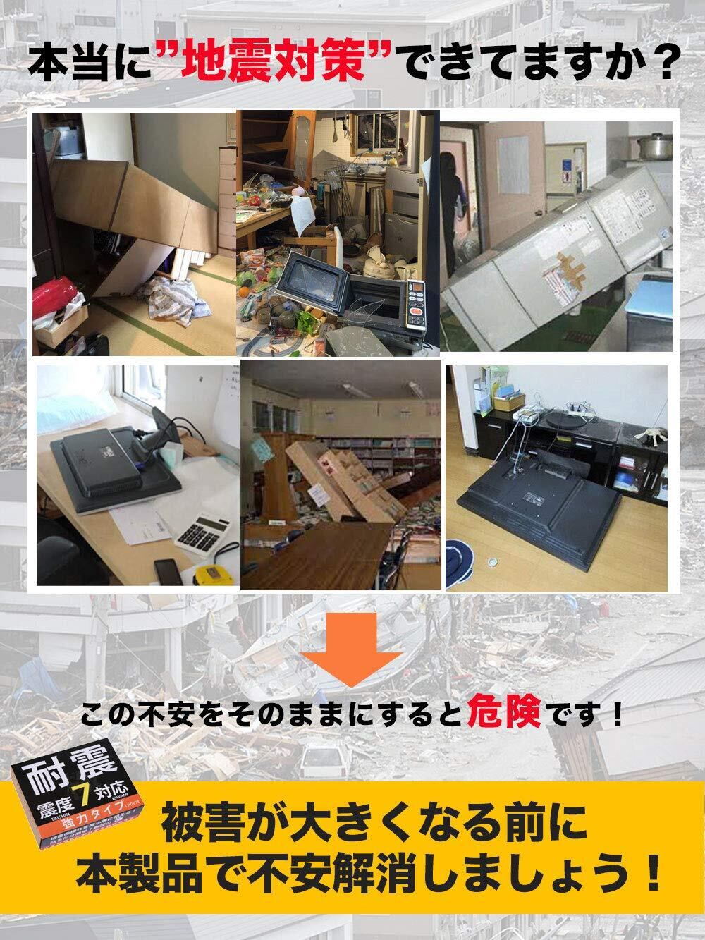 【耐震力No1】震度7対応で東日本大震災クラスの大地震にも対応。4枚以上の設置で耐荷重100kgでトップクラスの耐震力を持つことが可能です。耐震力に重視をして安価なゴム素材を使わずに高品質で厚さ5mm の極厚耐震ジェルで地震から守ります。
