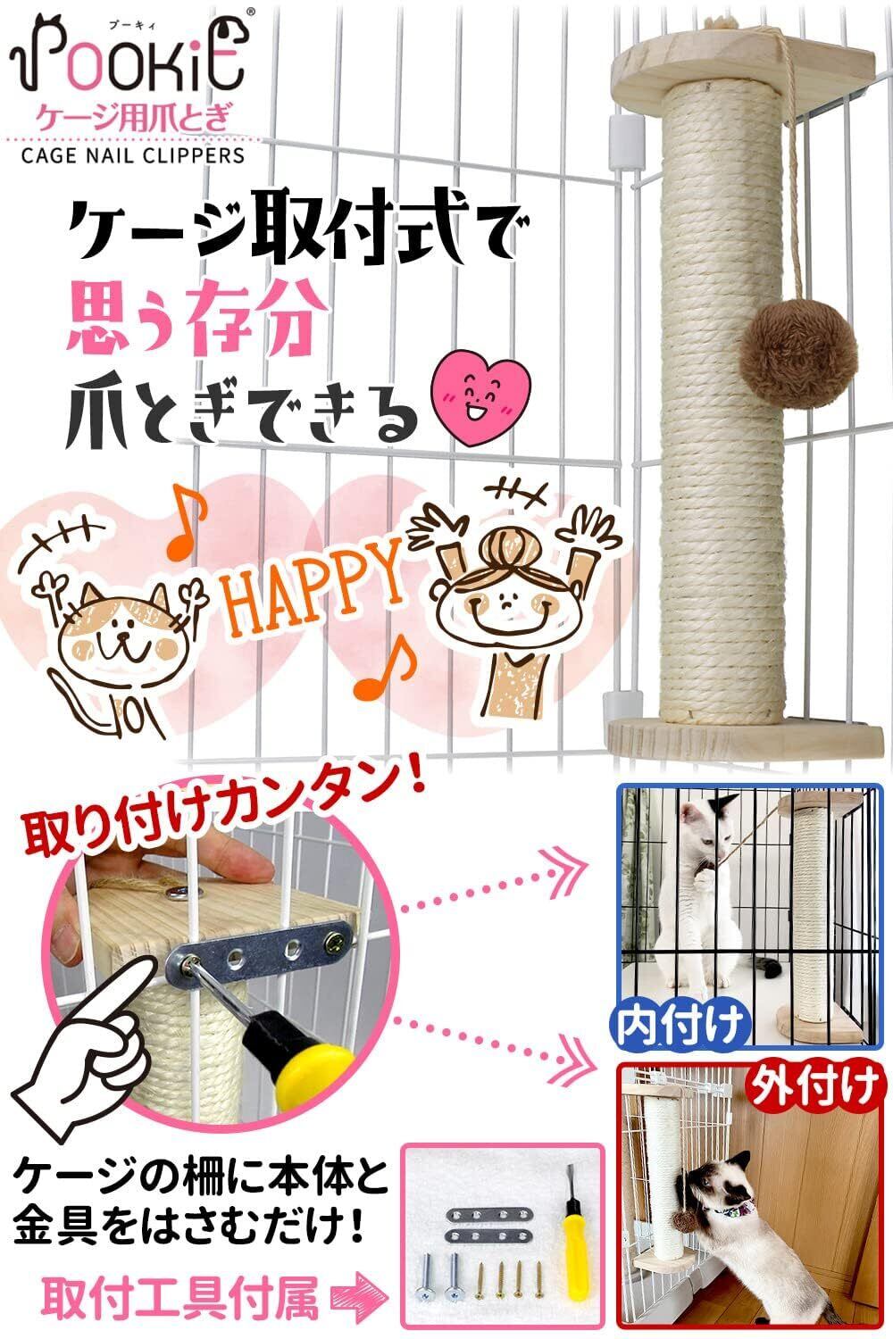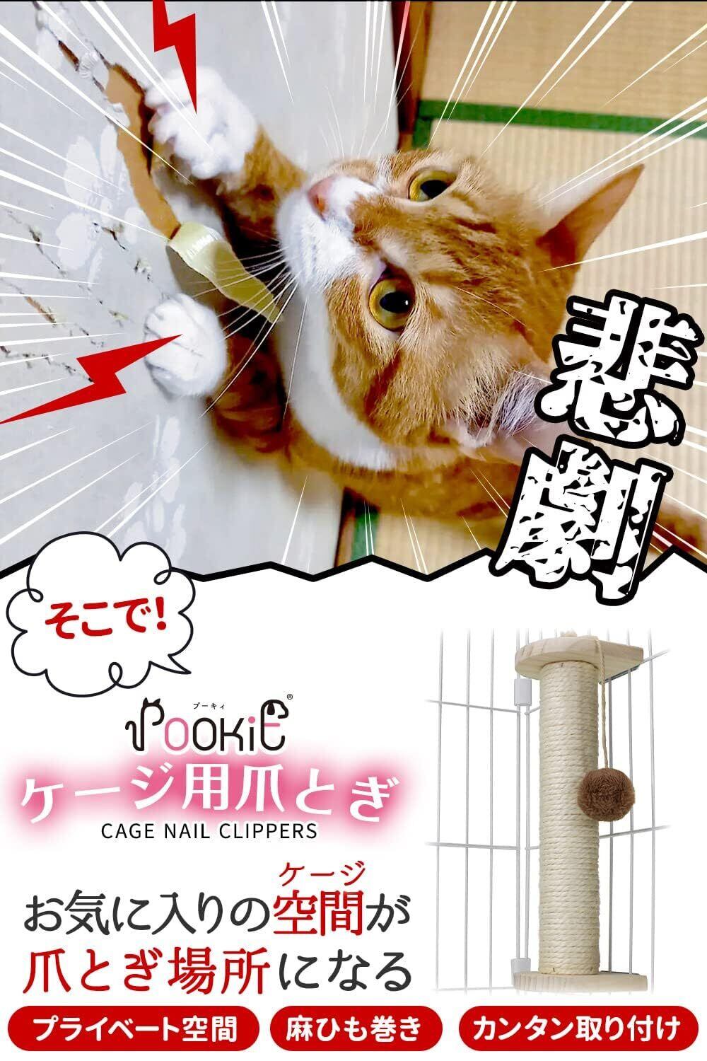 【POOKIE(プーキー)ケージ取付爪とぎ】ケージ側面に取りつけるから、スペースを有効活用でき邪魔になりません。ねこちゃんのお気に入り空間が爪とぎ場所になって、ねこちゃんもオーナーも嬉しい