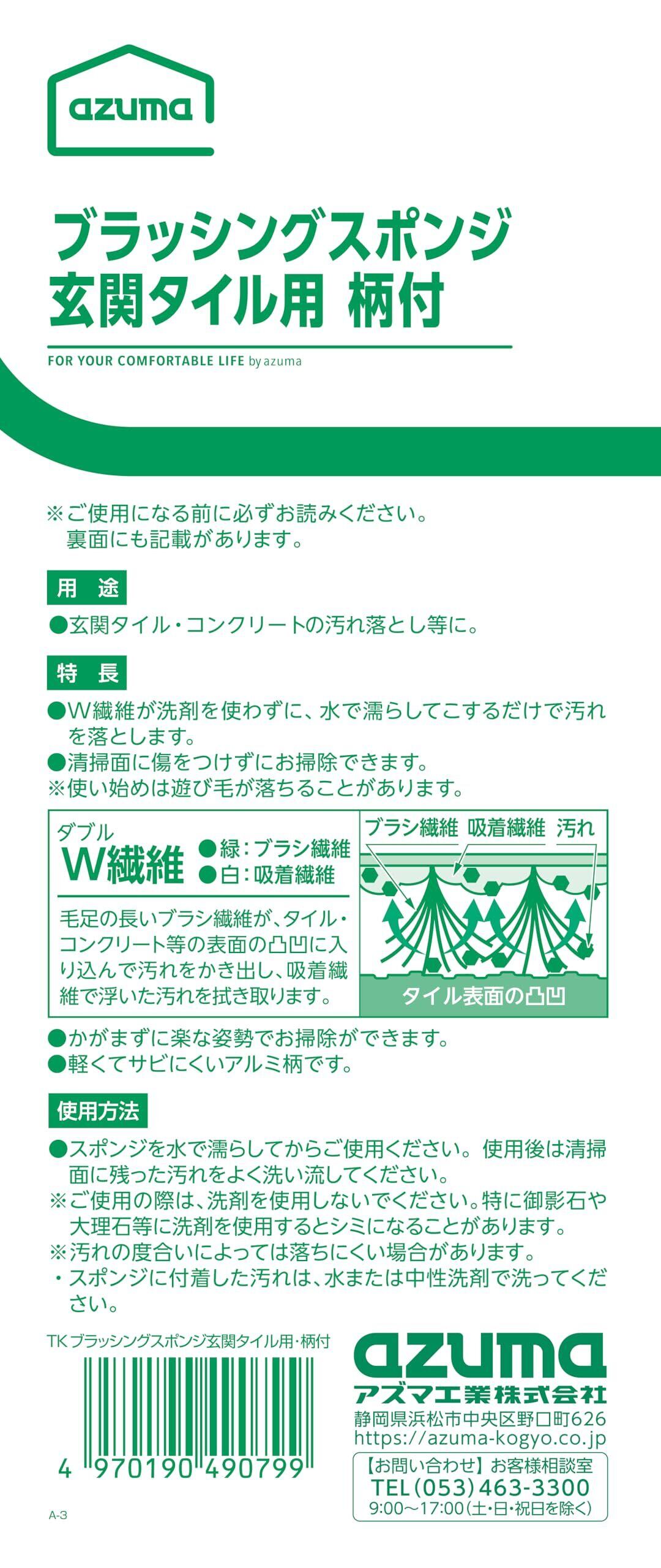 アズマ工業(Azuma Industrial) TKブラッシングスポンジ玄関タイル用・柄付 つなぎ柄 本体 グリーン 玄関掃除 ベランダ掃除 全長約107cm スペア交換可 アズマブラシ
