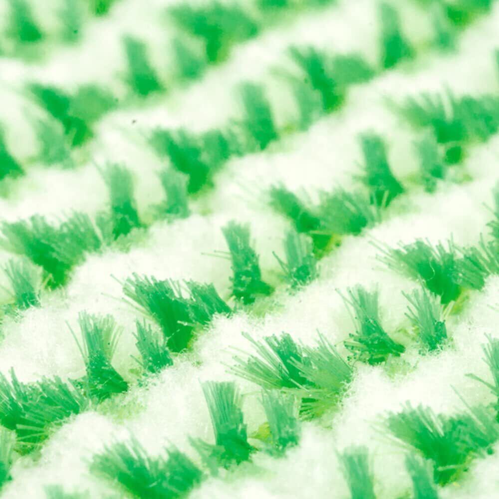 【傷がつきにくい】「ブラシのような繊維」にこだわり、毛が細い2種類の繊維を使用。清掃面を傷つけにくいスポンジです。