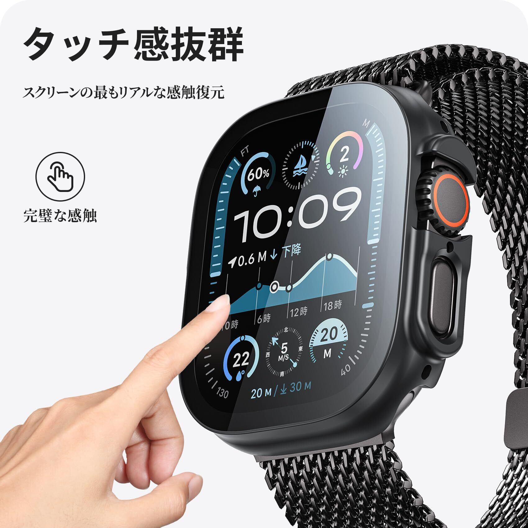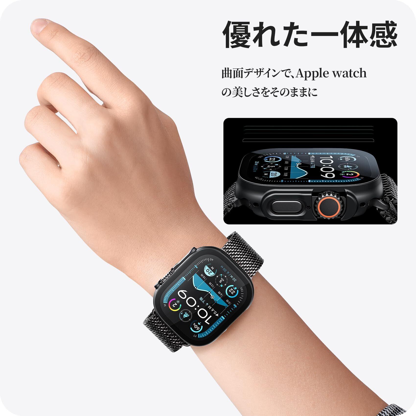NIMASO Apple Watch Ultra 2/ Ultra 49mm 用 ケース 対応 アップルウォッチ 49mm 対応 apple watch Ultra 2/ Ultra ケース 保護カバー ガラスフィルム 一体型 PC素材全面保護 ブラック(氷星シリーズ)NWC24H1518