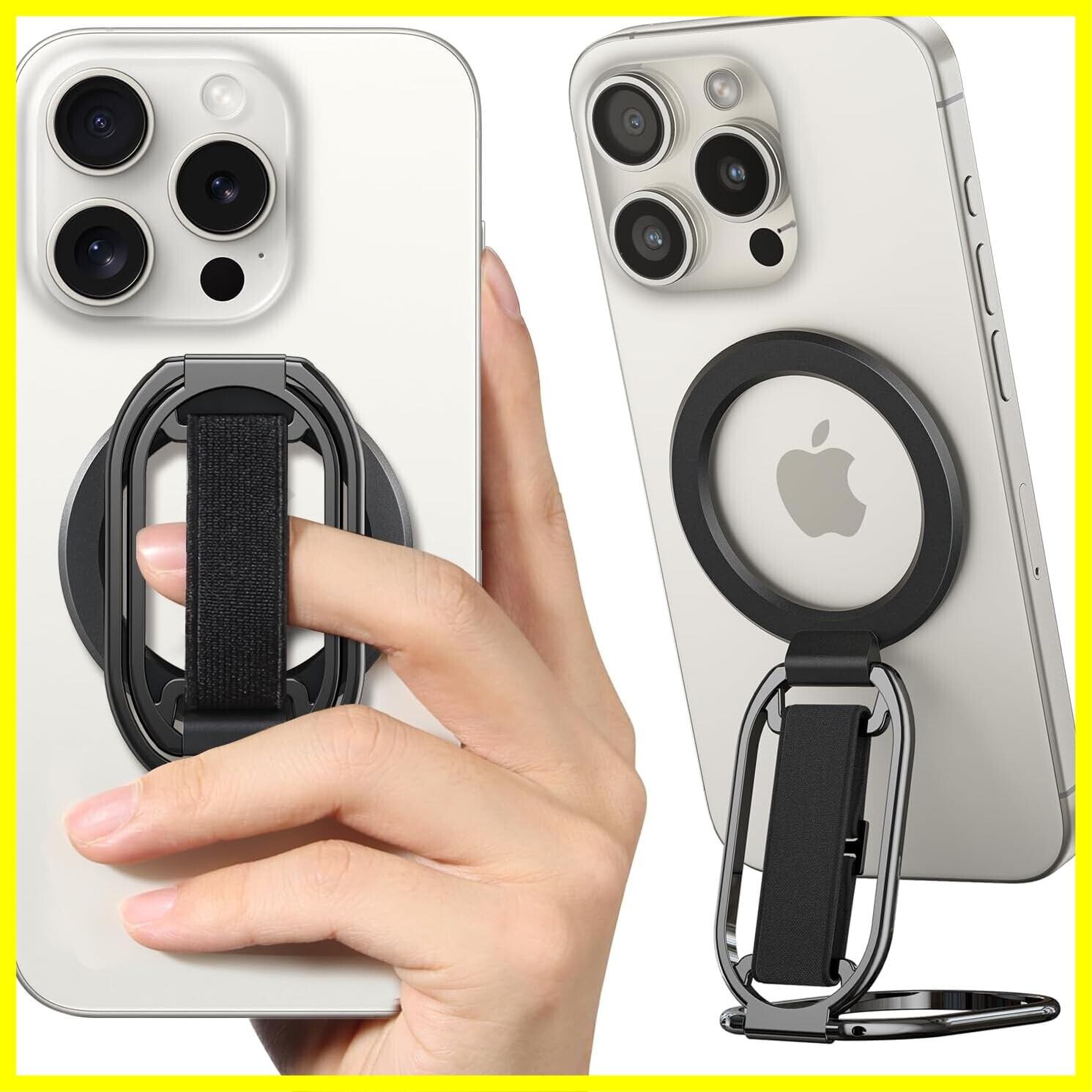 【 4-in-1 最新構造 】 enGMOLPHY MagSafe対応バンカーリンググリップ マグセーフキックスタンド マグネッツフィンガーループ 磁気リングホルダーストラップ 取り外し可能 安定性, 【iPhone 12/13/14/15/16シリーズ用 】 マグセーフ対応アクセサリー(黒)