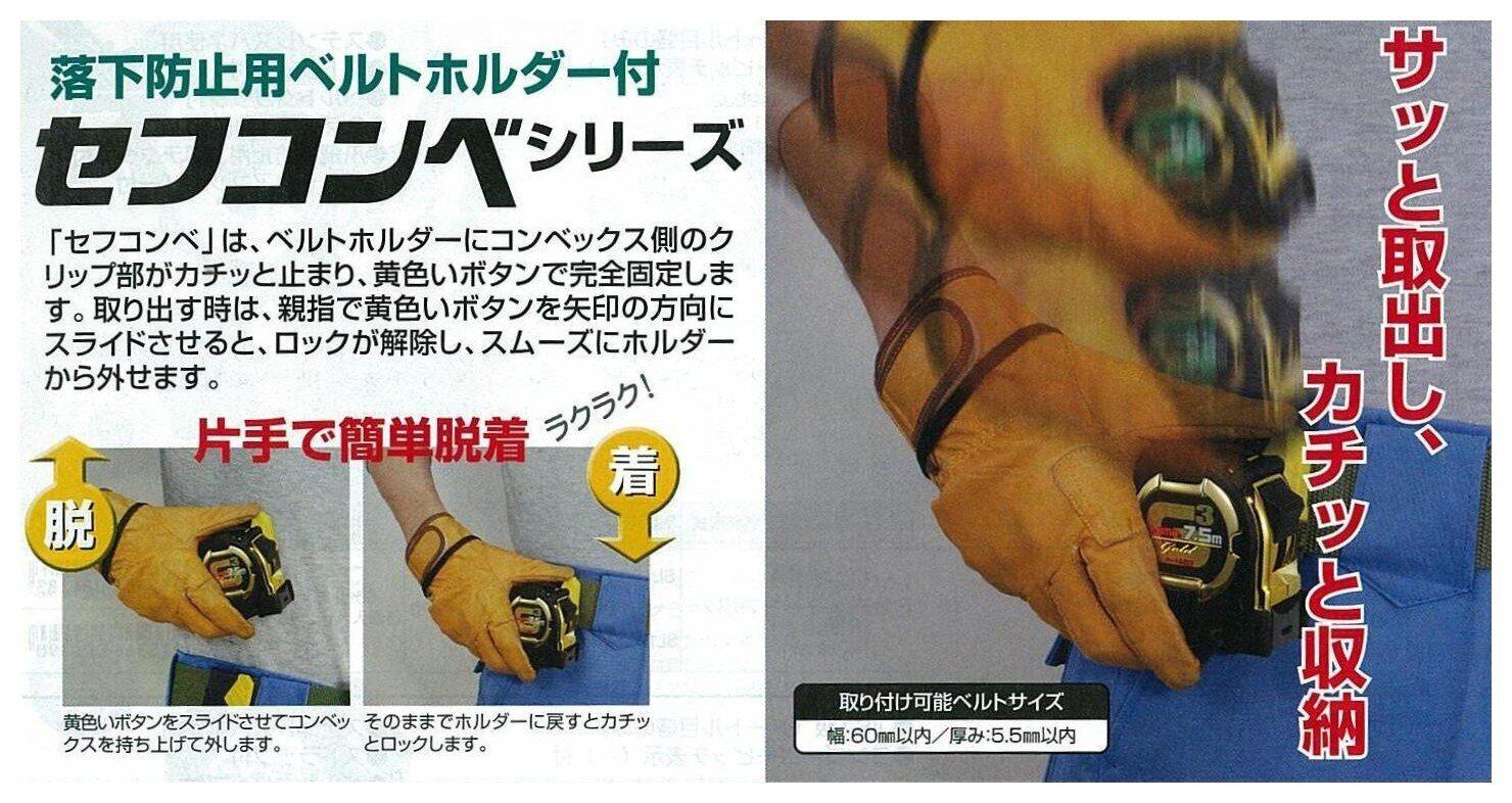 片手で簡単脱着できる、落下防止用ベルトホルダー付