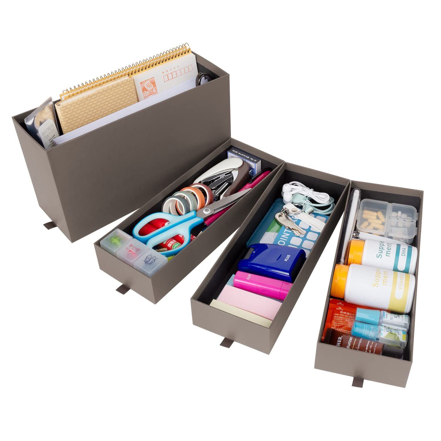こまごました小物だけでなく、おくすり袋や郵便物など深さが必要なものまですっきり収納することができます。