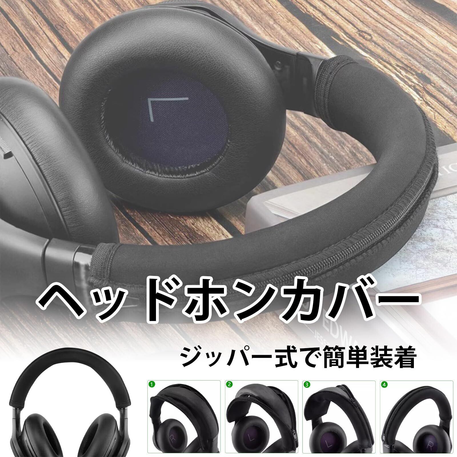 ヘッドホン カバー 交換用 汎用 ジッパー式 ヘッドバンドプロテクター 保護 劣化 対策 水洗い可能 簡単に装着 黒