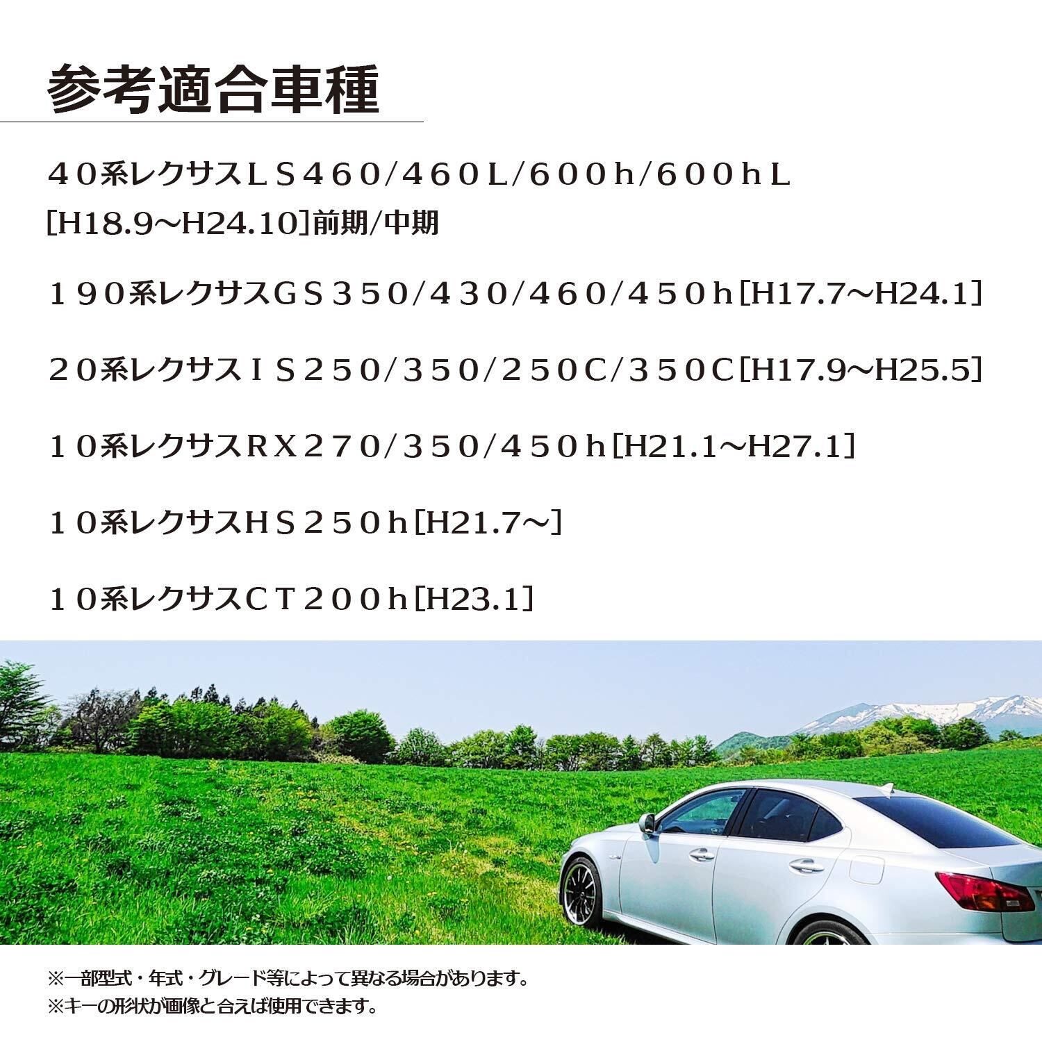 参考適合車種 IS IS350 IS250 GS GS430 GS350 LS LS600h LS460 HS HS250h RX RX450h RX350 RX270 上記以外でも商品写真と形状が合えば適合します 3ボタンキーに対応します ※必ず商品写真を確認いただき、取付可否はお客様で判断願います。 材質 ABS製 サイズ (約)69mm×44mm×19mm
