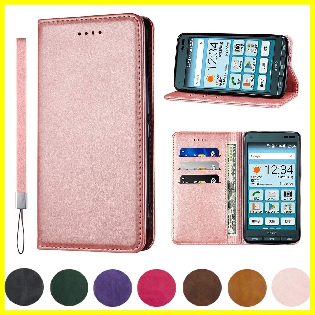 BASIO3 KYV43 ケース 手帳型 高質PUレザー BASIO3 KYV43 カバー KYOCERA BASIO 3 ケース 耐衝撃 スマホケース おしゃれ カードポケット スタンド機能 便利 スプラット同梱 携帯ケース(ピンクゴールド)