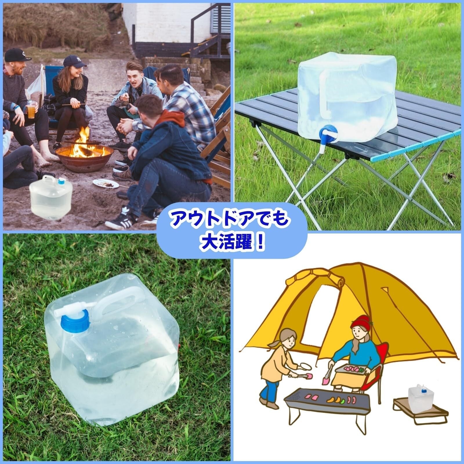 防災用だけでなく、さまざまなレジャー、アウトドアで大活躍する10L容量のウォータータンクです。