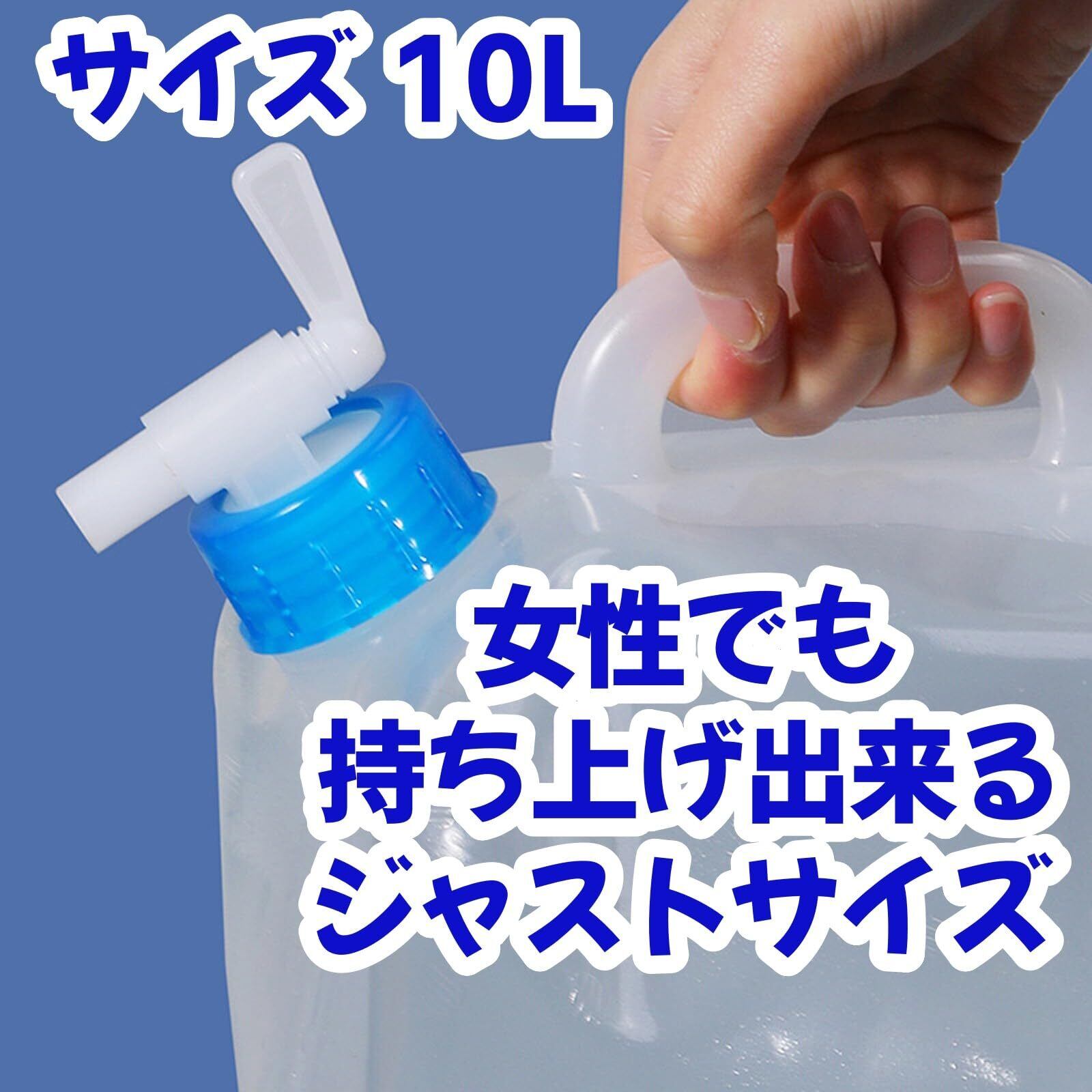 ポリタンクはコンパクトに折りたたむことが出来るから、持ち運びのときに便利に使えます。 コック付きなので、必要な量だけ出せるので、便利に使えて節水にもなります。
