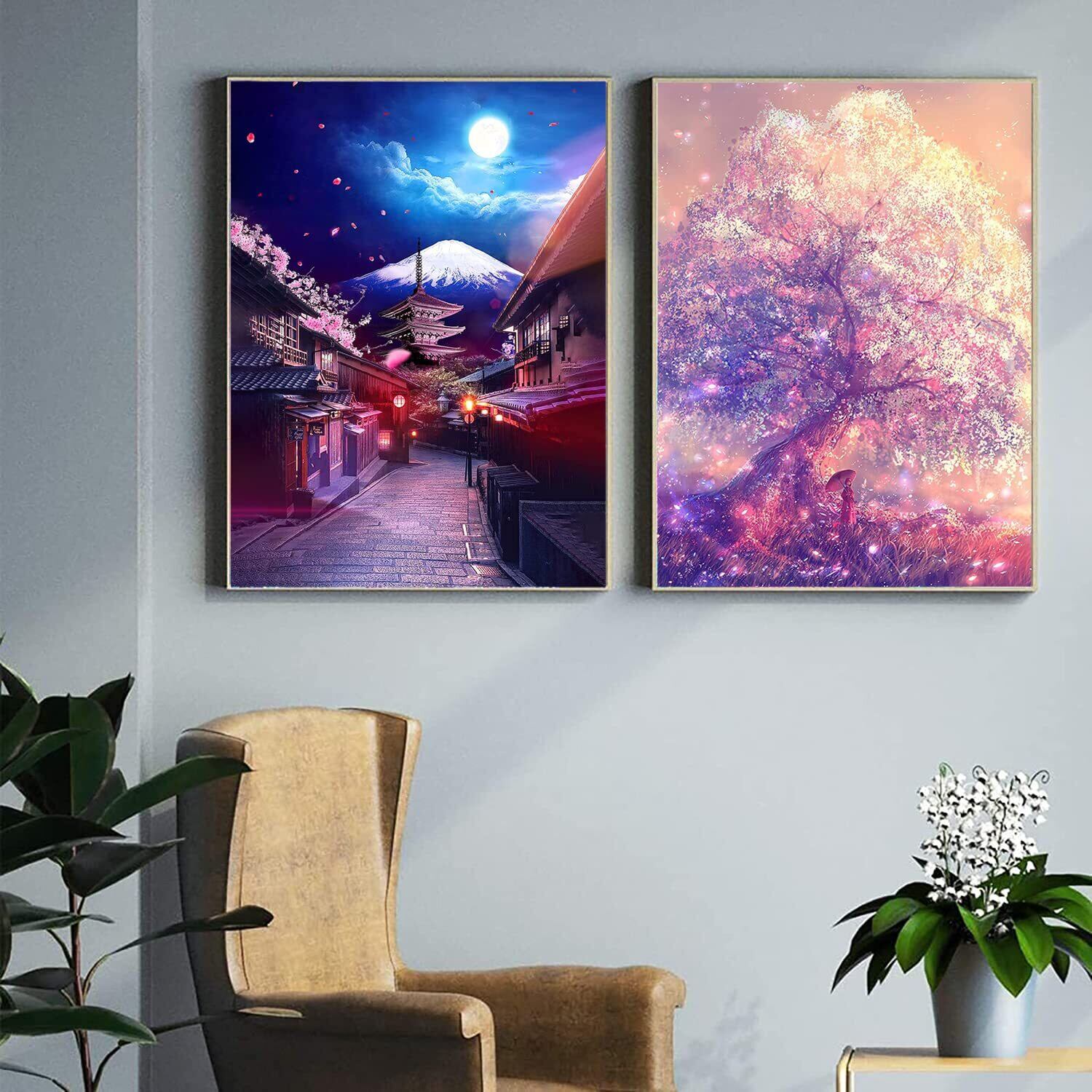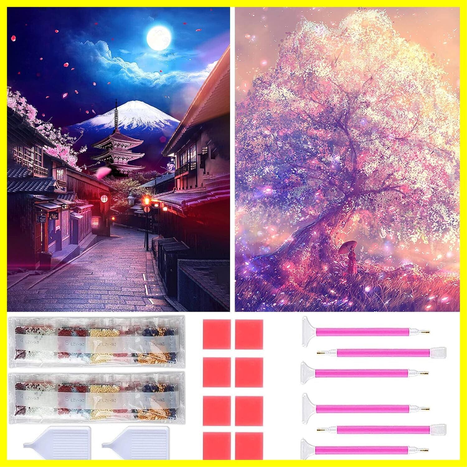 ダイヤモンドアート Rinimie ダイヤモンドアート キット 富士山 + 桜2枚セット ダイアモンドビーズ絵画キット 5Dモザイクアート DIY 手作り絵画手芸キット ダイヤモンド塗装 全面貼り付けタイプ 芸術品 家用装飾 30x40cm