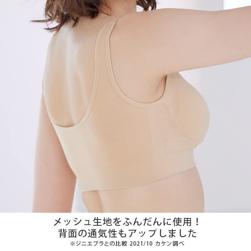 軽く柔らかいメッシュ生地をふんだんに使用!まるで空気のような極上の着け心地。前面、背面共にメッシュ素材を採用し、背面部分の通気性が2.5倍※にアップしました。より一層清潔・快適にお使いいただけます。※ジニエブラとの比較 2021/10 カケン調べ