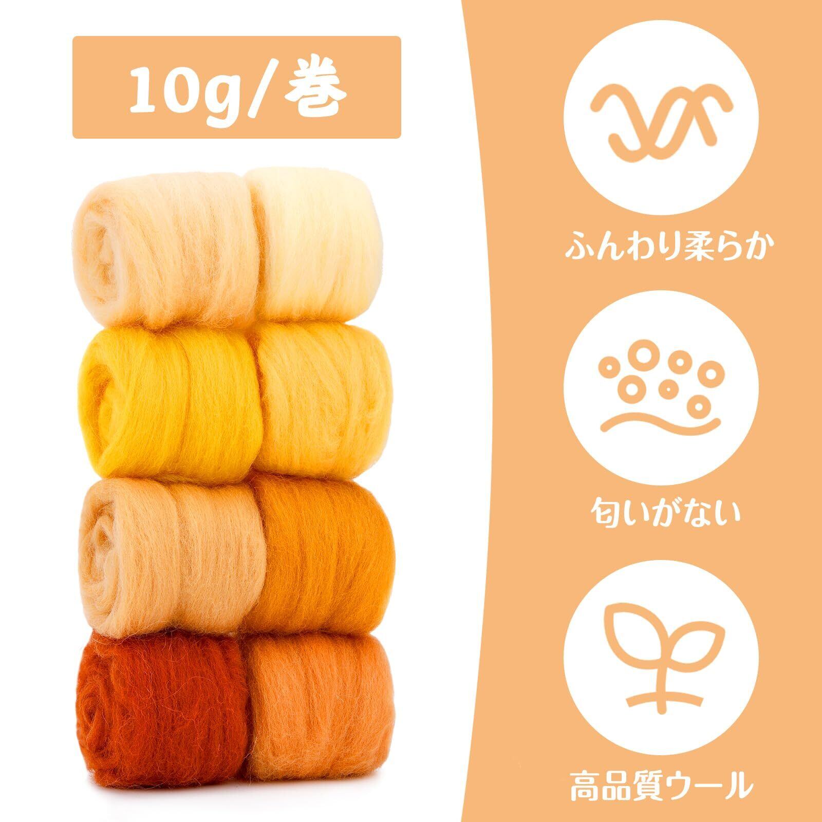 RMTIME ンス ニードルフェルトウール、羊毛フェルト ニードルフェルト 毛糸 8色 羊毛繊維 各色10g 羊毛 セット ウェットフェルト フェルト 手芸キット DIY素材 手作り 初心者様 工芸愛好者 イエローシリーズ