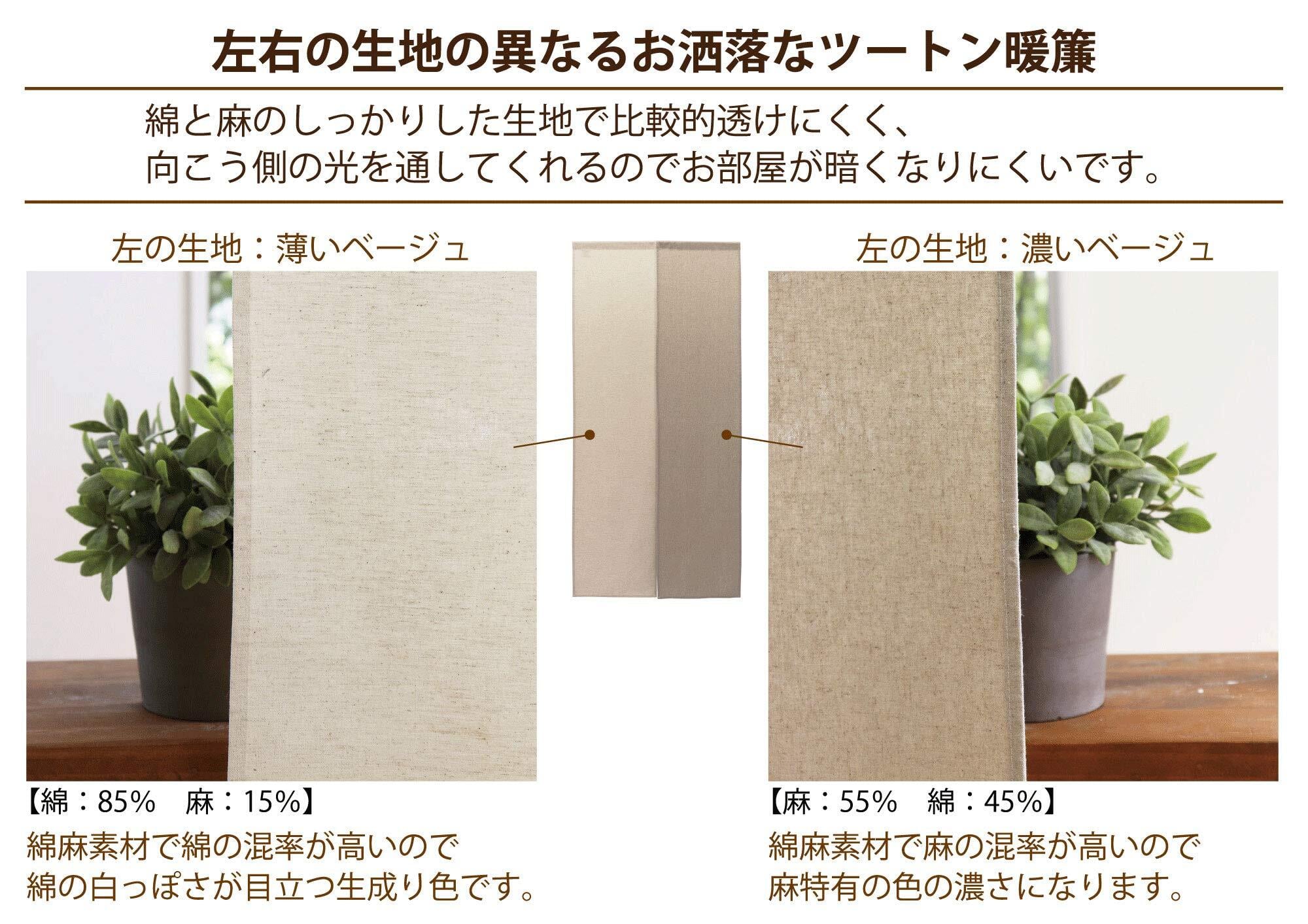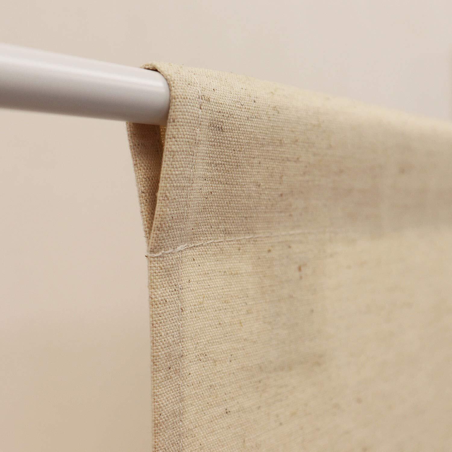 ※ナチュラルハーフ生地の注意点:この生地は天然素材(綿・麻)のため、季節(特に湿度)によって収縮することがあります。縫製の時に1cm未満で丈の長さに違いが生じることがあります。予めご了承ください。 備考:お手持ちのポール(つっぱり棒)にかけてお使い下さい。