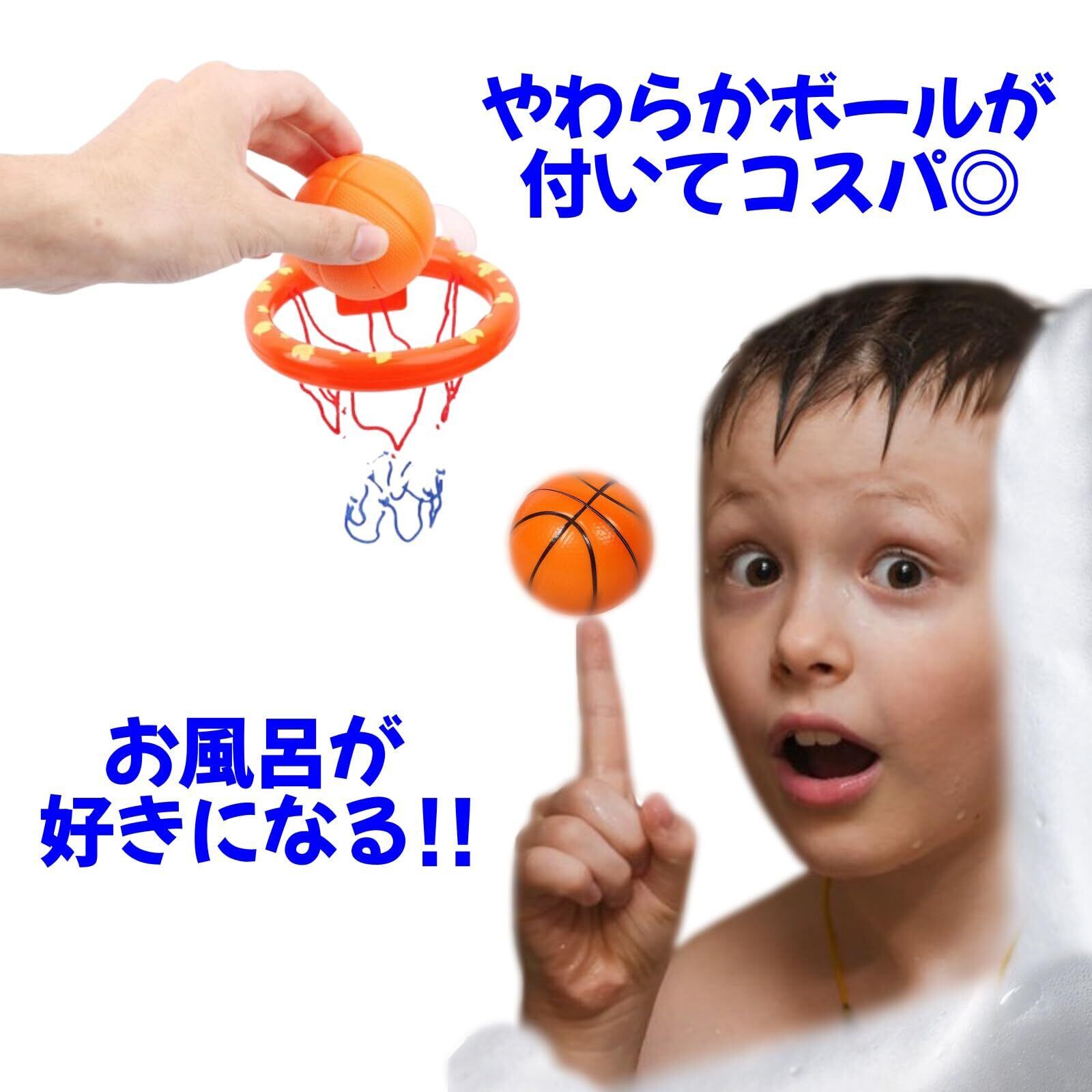ゴールについている吸盤をお風呂の滑らかな壁などに取り付ければ設置はOK!すぐに遊ぶことが出来ます。 普段のお風呂がとても楽しくなる!お風呂が好きになる!そんなバスケットボールのセットです。 大人もハマる!お風呂時間もアッという間! お風呂時間をワイワイ楽しめます!
