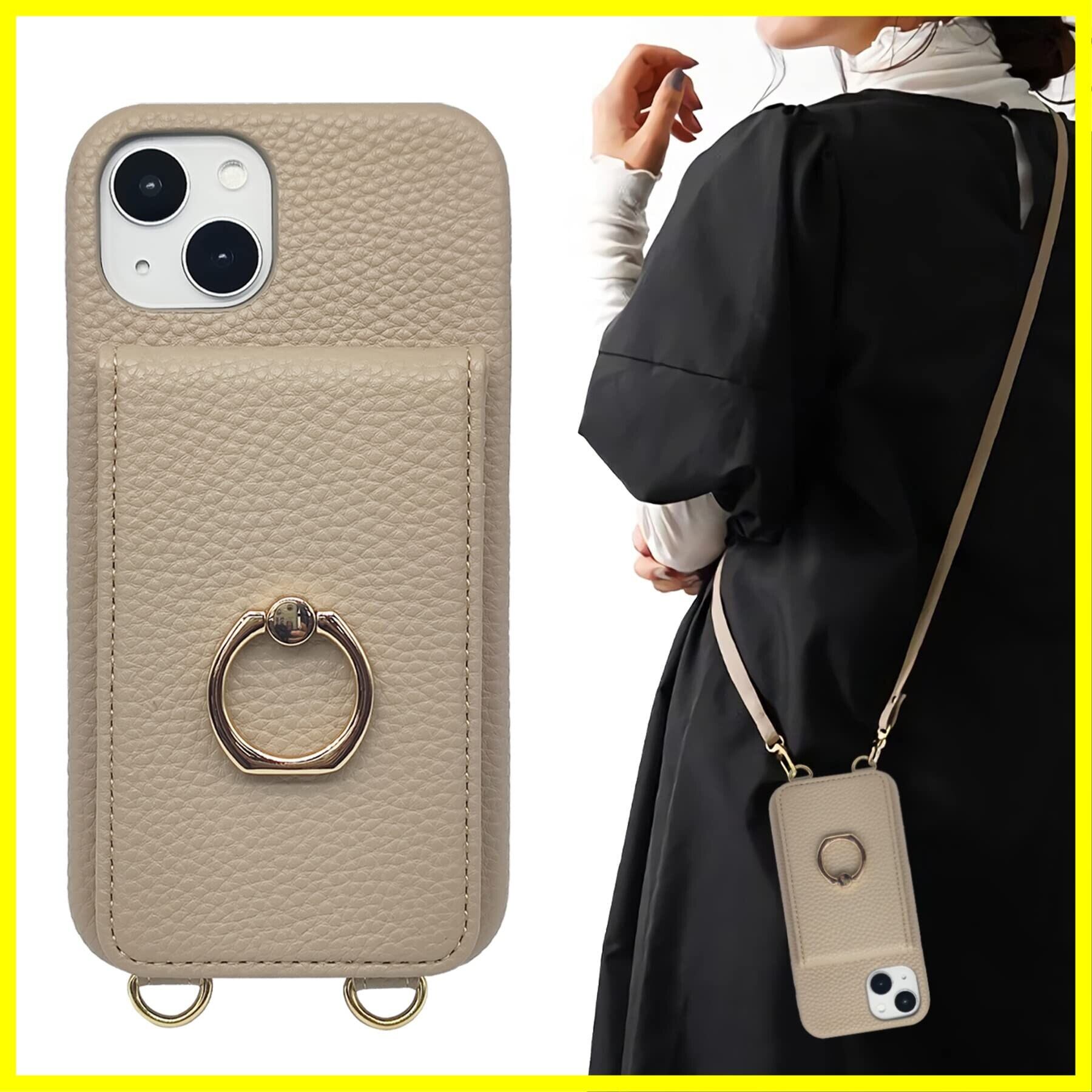 いphone14 ケース ショルダー カード収納 リング付 スマホケース iphone14 ストラップ iphone14ケース ショルダー 落下防止 調節可能な 肩掛け 斜め掛 首掛け 可愛 かわいい おしゃれ スタンド機能 モカブラウン