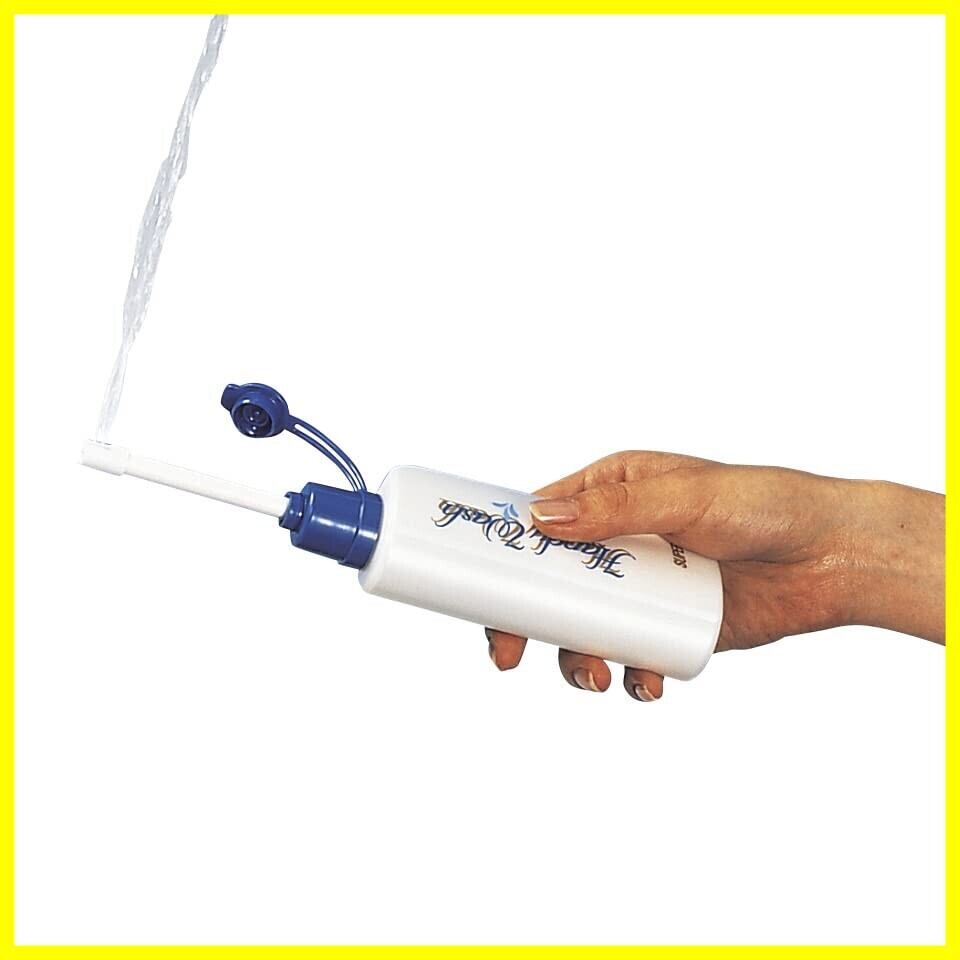 手軽におしりが洗えるおしり洗浄器。軽量でコンパクト、電池不要の手動式で水圧の強弱も自由です。抗菌仕様。