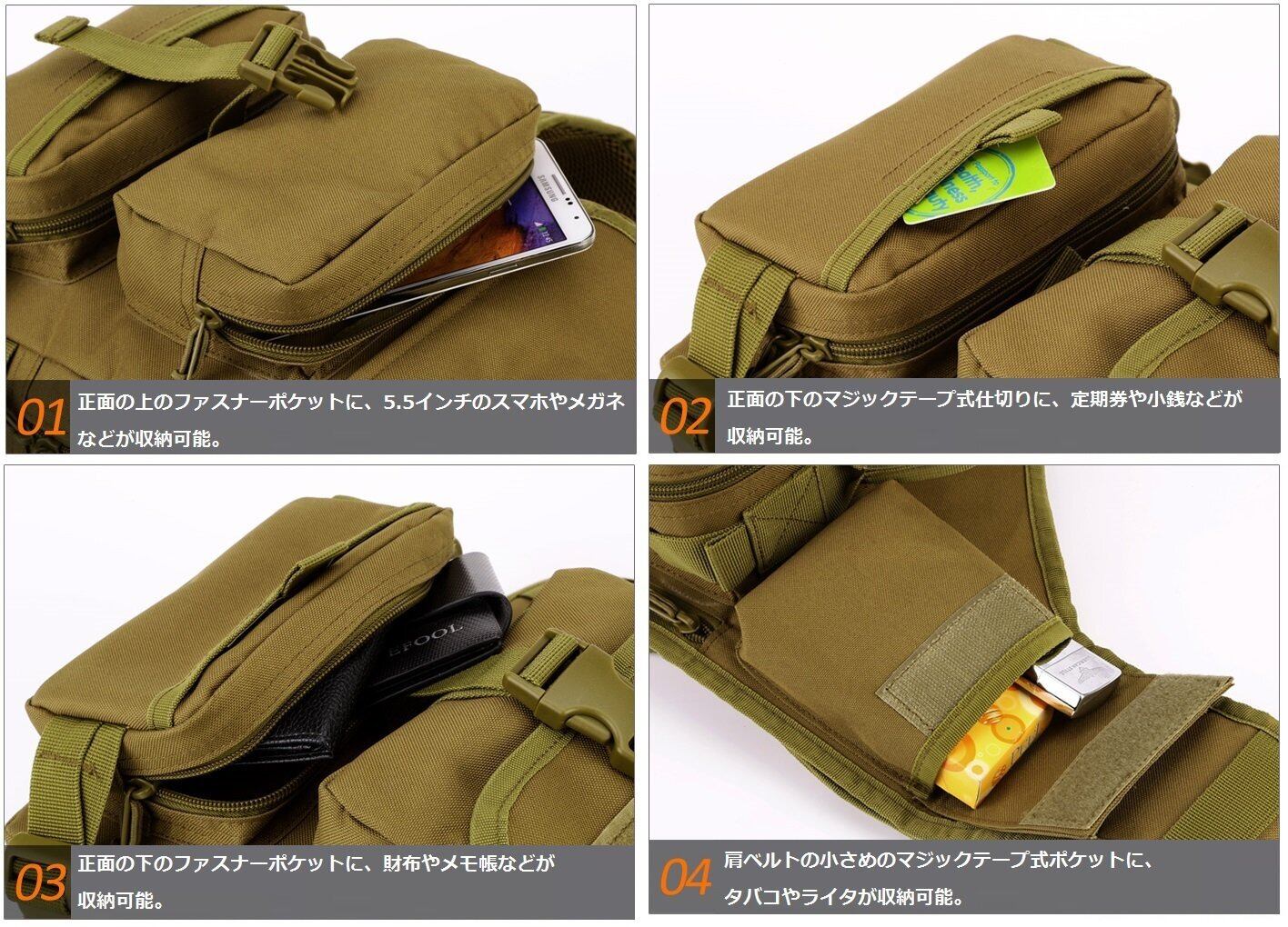 Phoenix Ikki レーンジャー 多彩なポケット 選べる6色 迷彩 防水機能 Molleモール対応 旅行 登山 宿泊 撮影 サイクリングに最適 多用途 斜めがけバッグ アウトドア ワンショルダーバッグ カメラバッグ