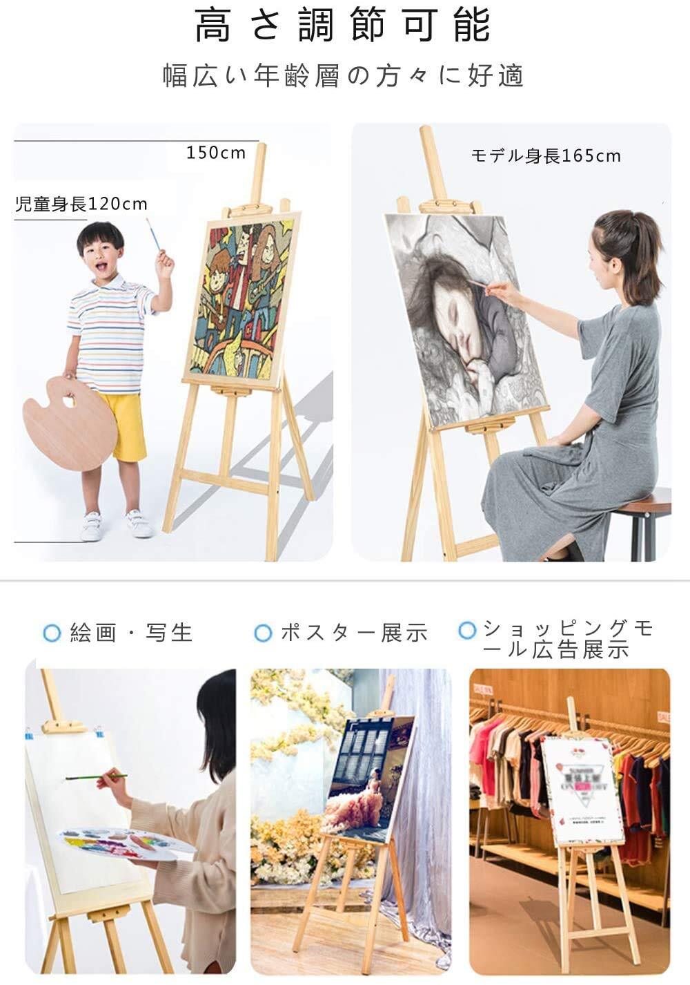 【素材】木製(ナチュラル)天然松で作られており、安定した3脚構造の木製イーゼルです。耐久性、丈夫さ、安定性に優れています。