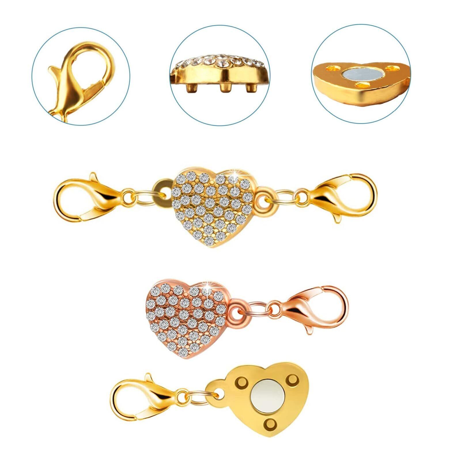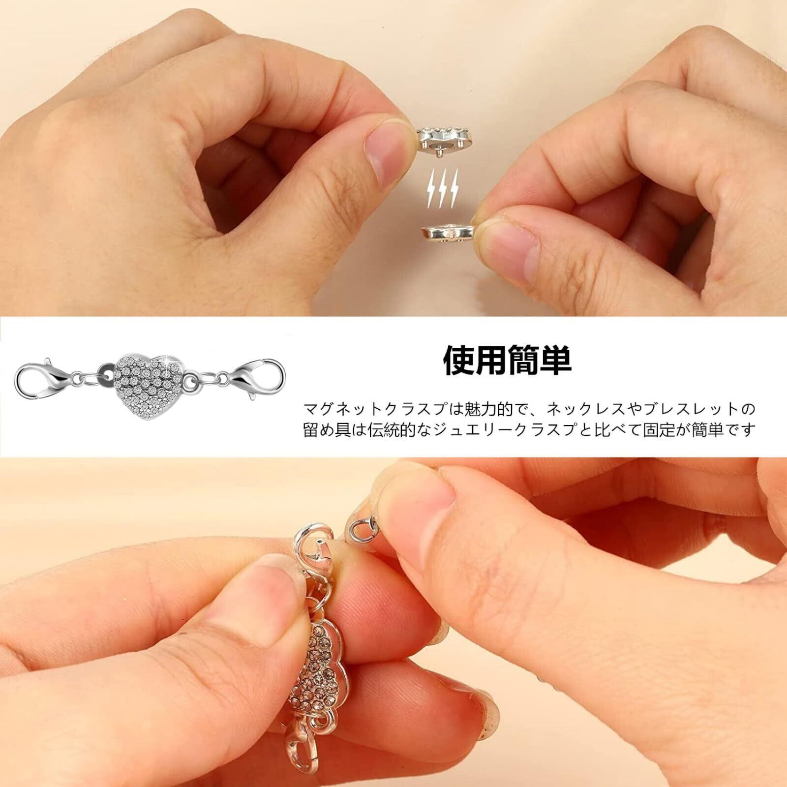 ネックレス 留め具 マグネット留め具 簡単装着 磁気クラスプ エンドパーツ ジュエリー用 延長用金具 DIY用 クラフト作り アクセサリーパーツ 4個セット ハート型