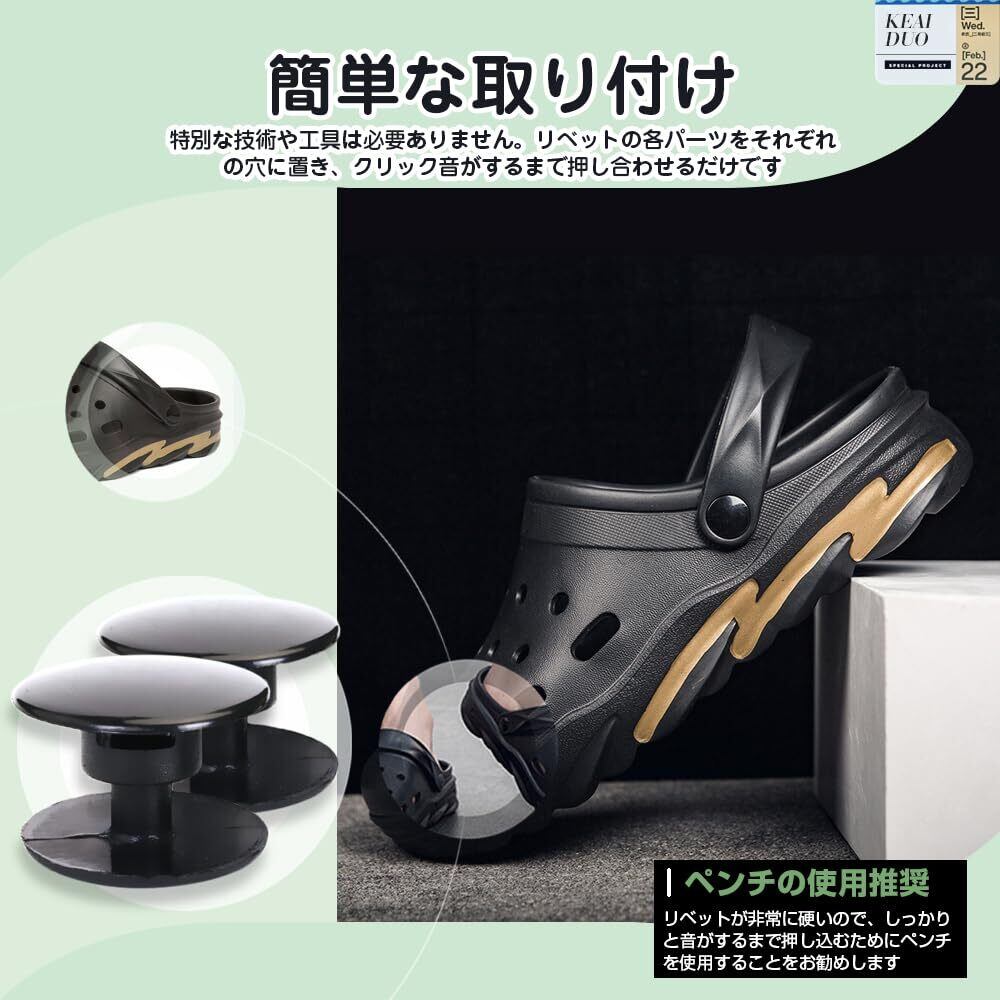 [KEAIDUO] クロッグサンダル 補修部品 外れたストラップの修理 12個セット 6ペアセット リペアパーツ リベットボタン 交換用 留め具 靴用 クロックス クロコボタン (黑/白) 樹脂製