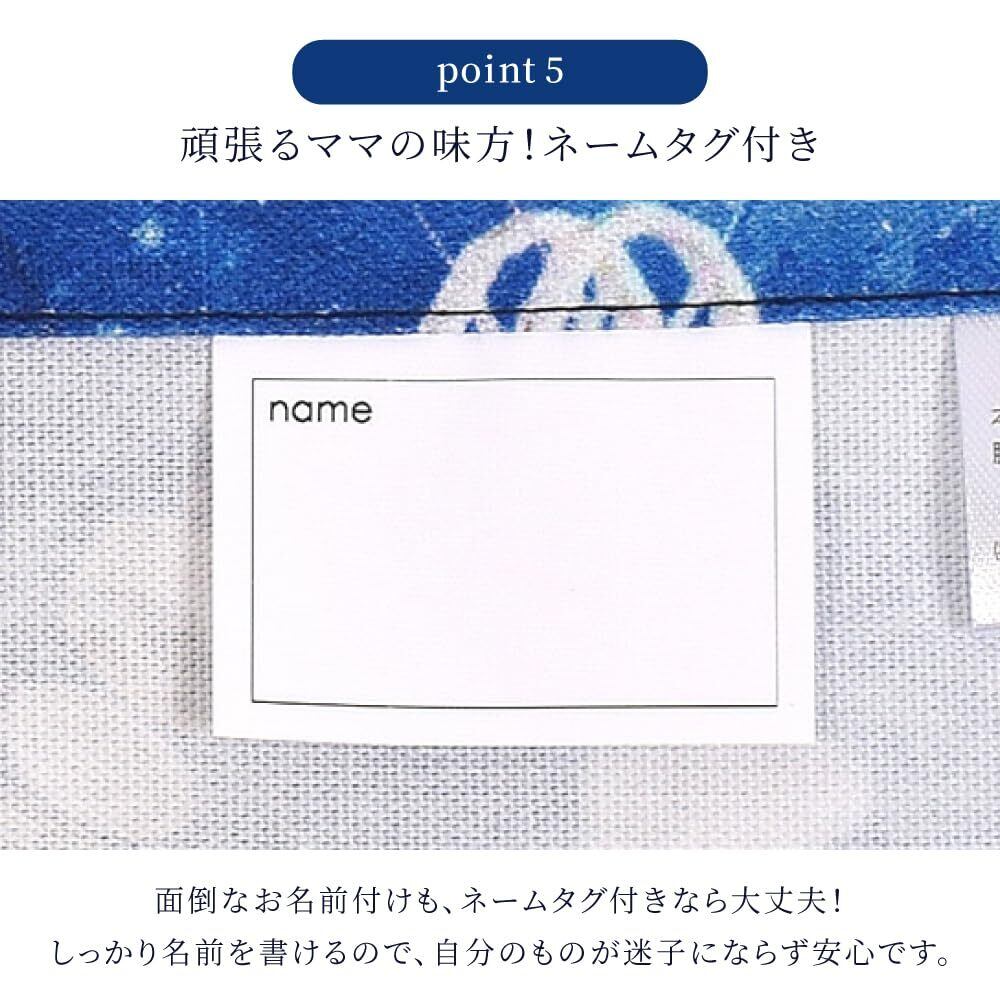 一人で簡単にかぶれる、おそろいの三角巾付き。三角巾の後ろはずり落ちにくいゴム仕様。サイズが大きい場合は、ゴムを少し縫って調節して下さい。