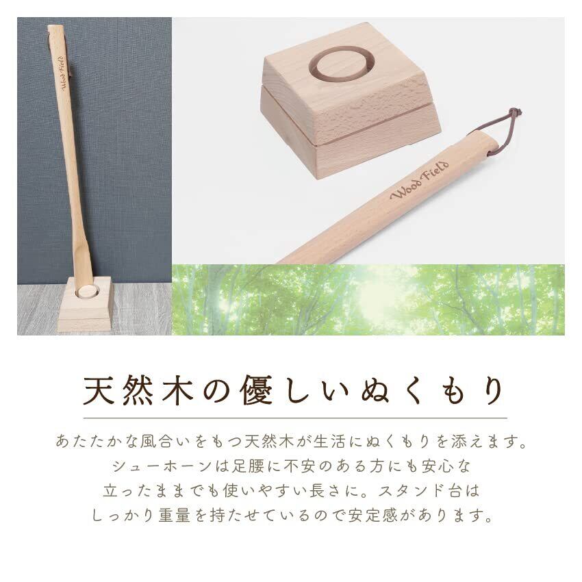 [ウッドフィールド] 木製 ウッドロングシューホーン スタンド付き ブナ素材 90010-set