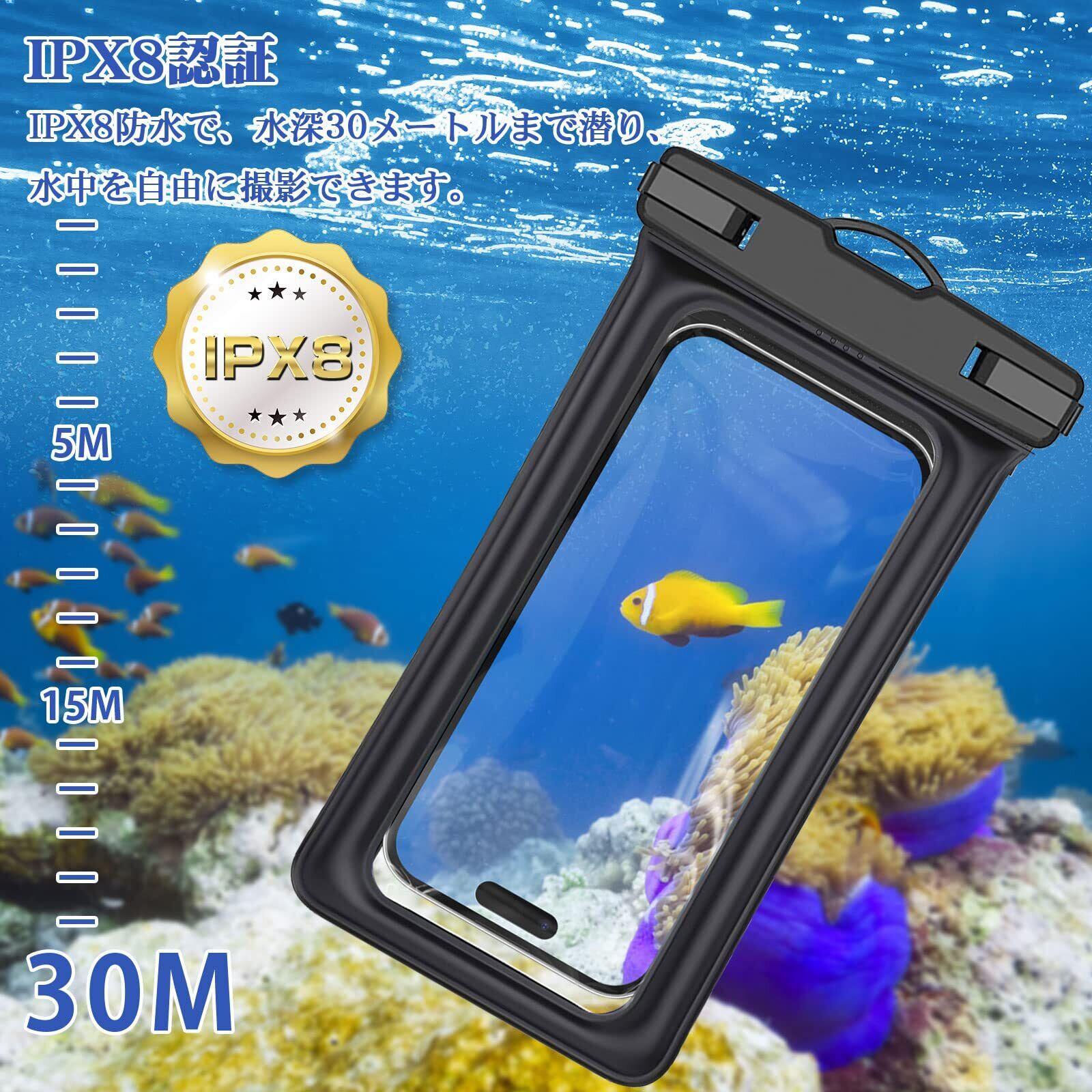 【IPX8認証】 スマホ 防水ケースはIPX8防水で、水深30メートルまで潜り、水中を自由に撮影できます。