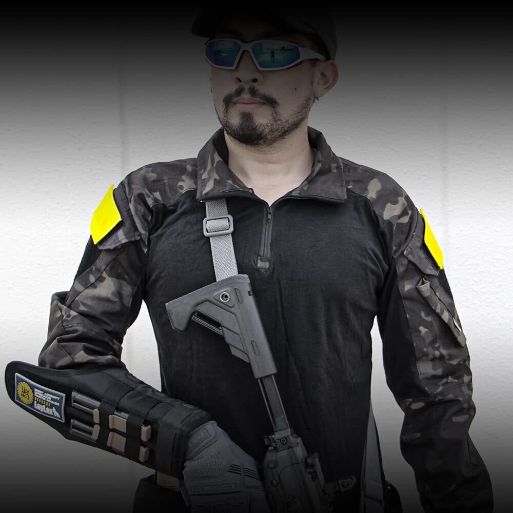激戦時でのズレや腕の圧迫感を解消する為にベルクロ仕様となっており、パッチ感覚で瞬時に取り替えが可能です。