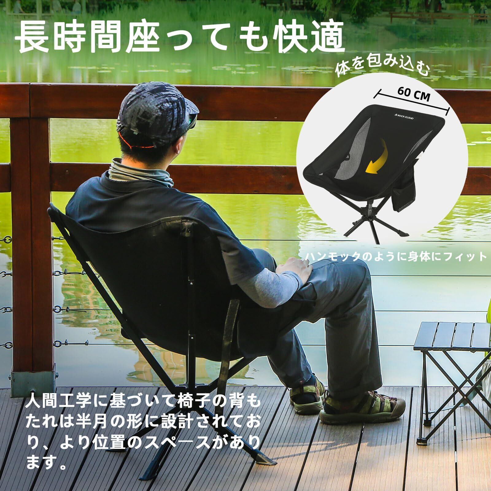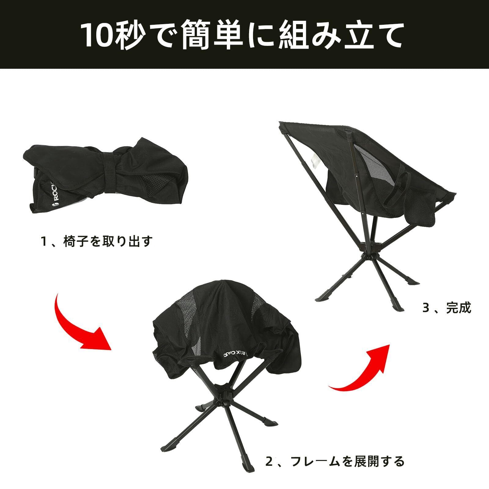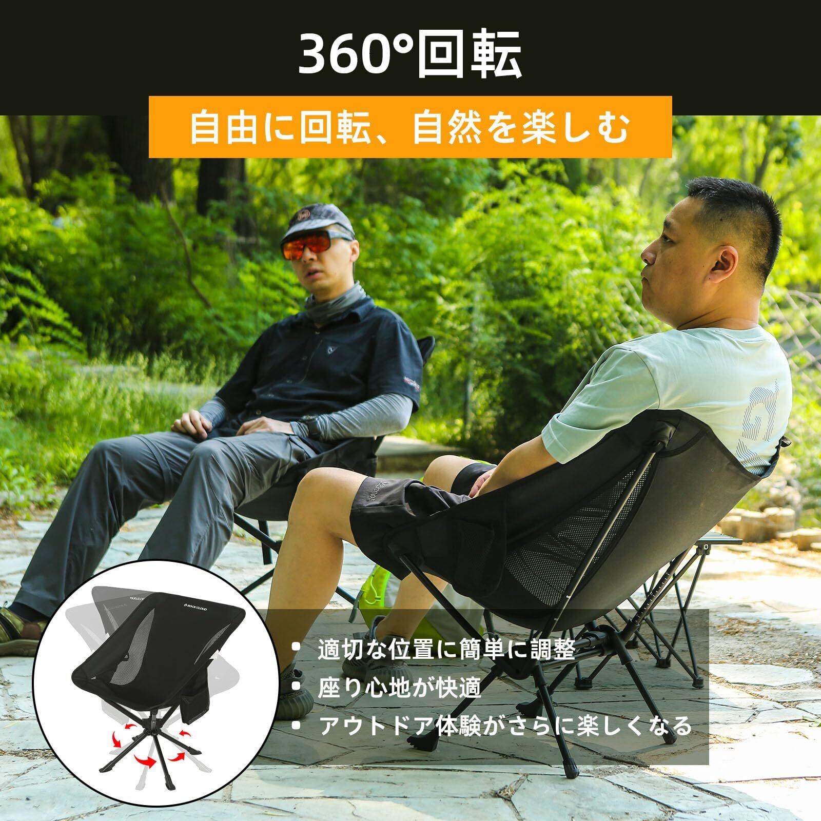 ROCK CLOUD キャンプ チェア メッシュ チェア 折りたたみ 超軽量 アウトドア チェア キャンプ 椅子 超軽量 収納袋付き コンパクト イス 耐荷重 お釣り 登山 ハイキング 携帯便利 いす, ブラック(回転可能)