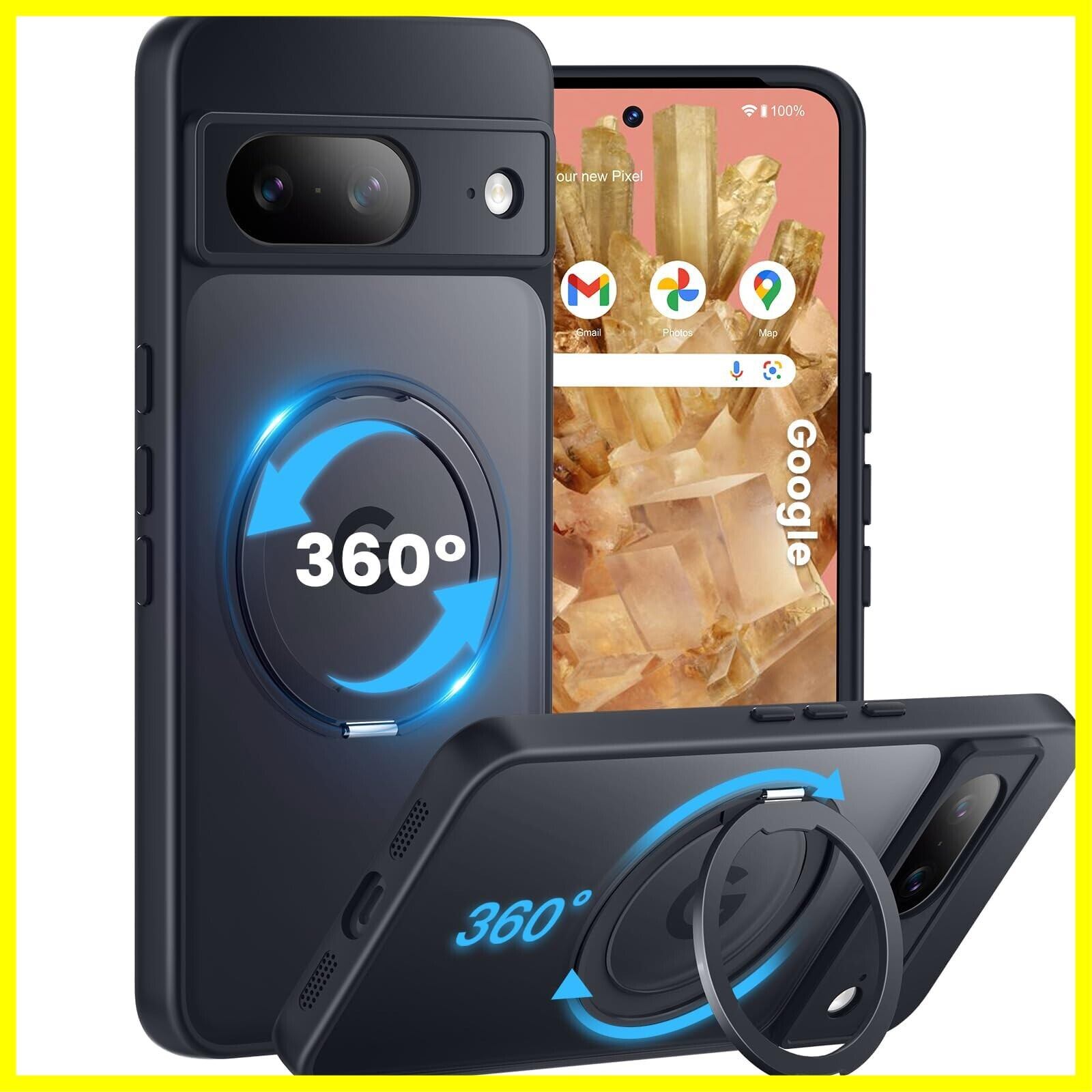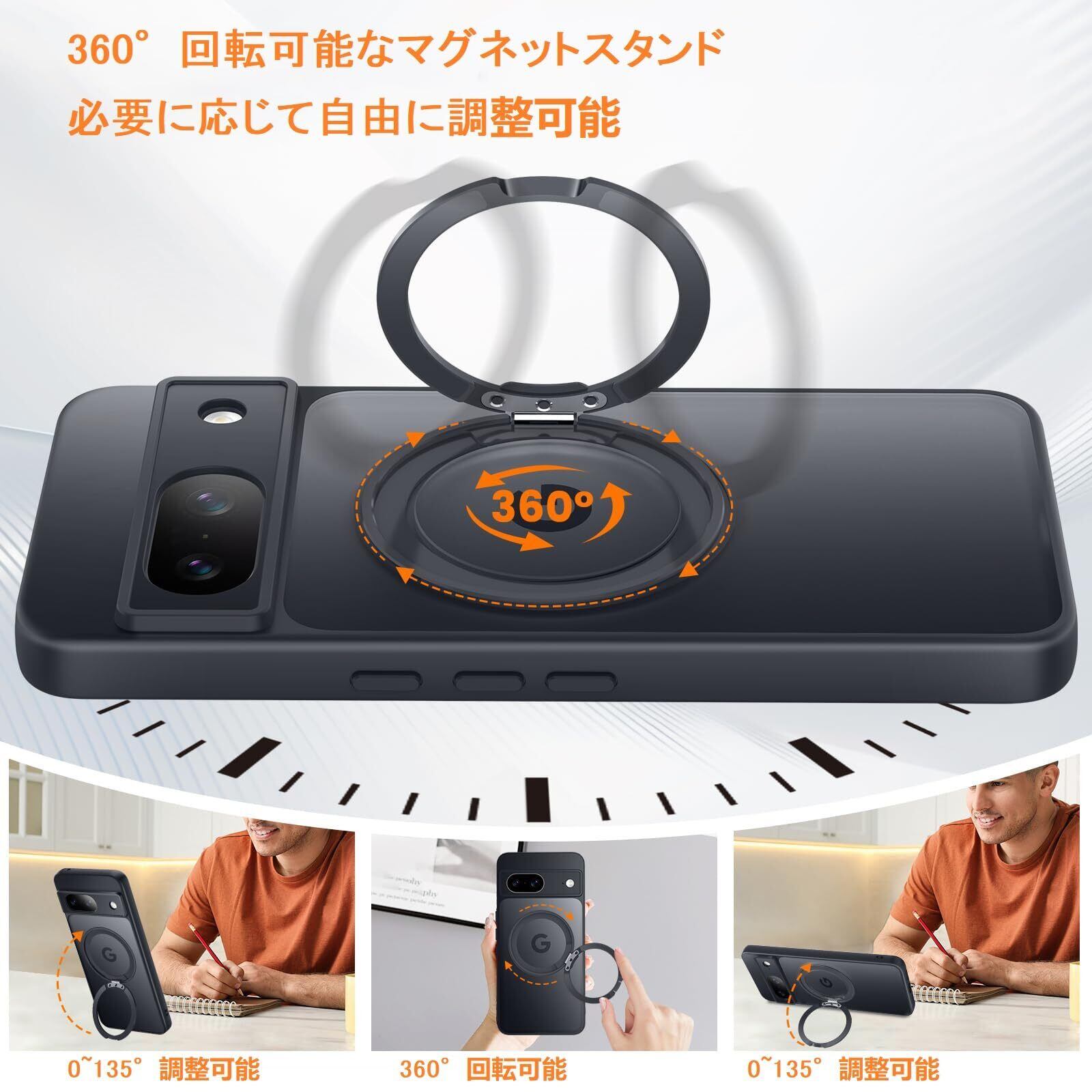 Google Pixel 7A 用 ケース Magsafe対応【360°回転可能な Magsafeリングスタンド ホルダー 一体型】グーグル ピクセル7A カバー スタンド機能 HILEGENER スマホケース 耐衝撃 半透明 マット感TPUケース 車載ホルダー対応 ワイヤレス充電 Pixel7A-ブラック