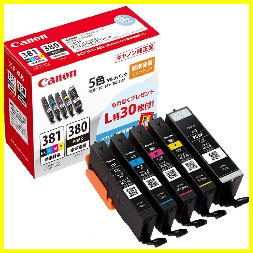 キャノン製 インクカートリッジ 純正 交換用 BCI-381+380/5MP 5色 (BCI-381+380/5MP, 1)