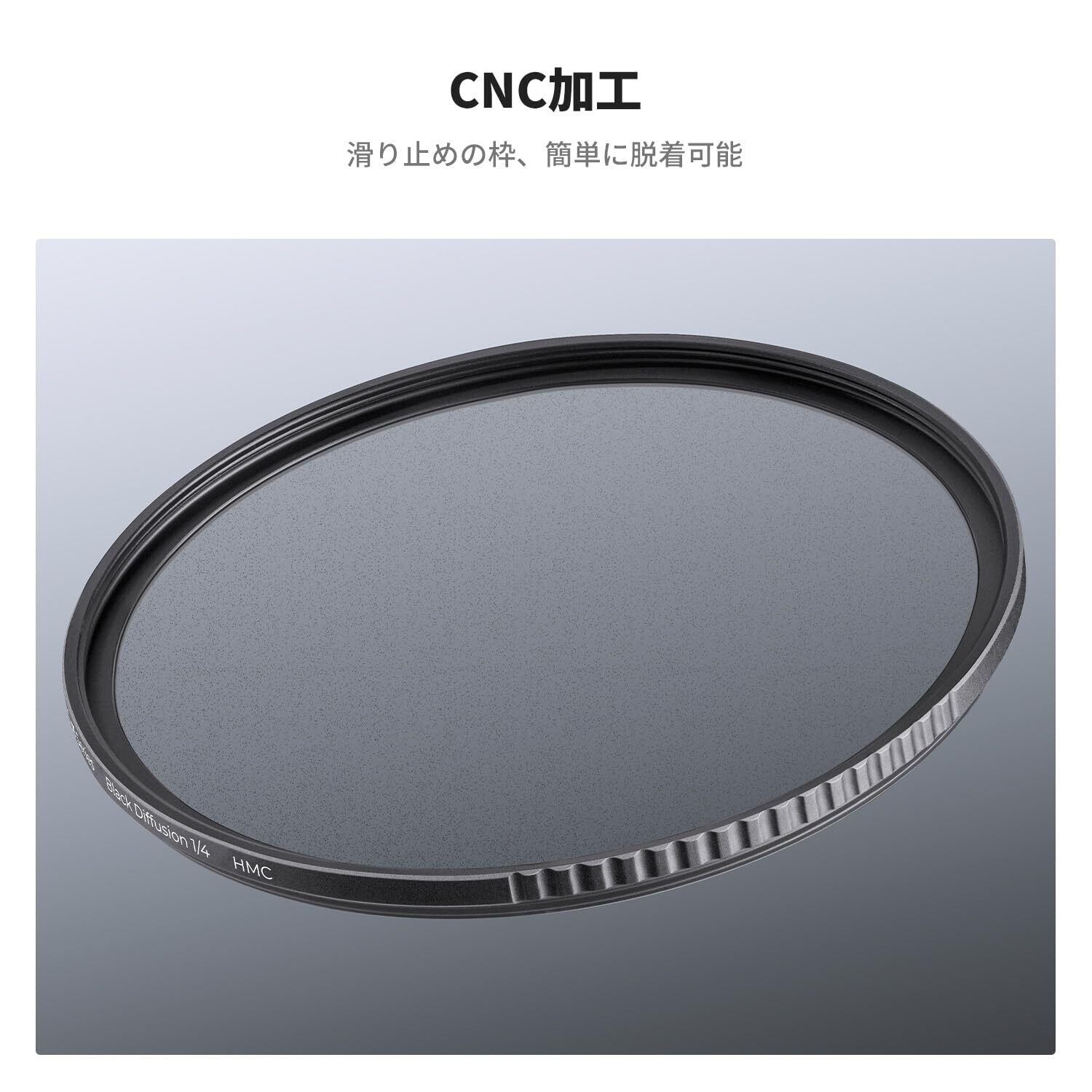 【薄枠&航空アルミ材質】1/4ソフト効果フィルターは精密加工による薄枠設計が採用されているので、広角レンズでもケラレを気にせず使用できる。わずか3.3mm薄枠は航空アルミ製で耐久性がある。(効果の強さはブラックミスト1/8が最も弱く、次にブラックミスト1/4が最も効果が強くなります。)