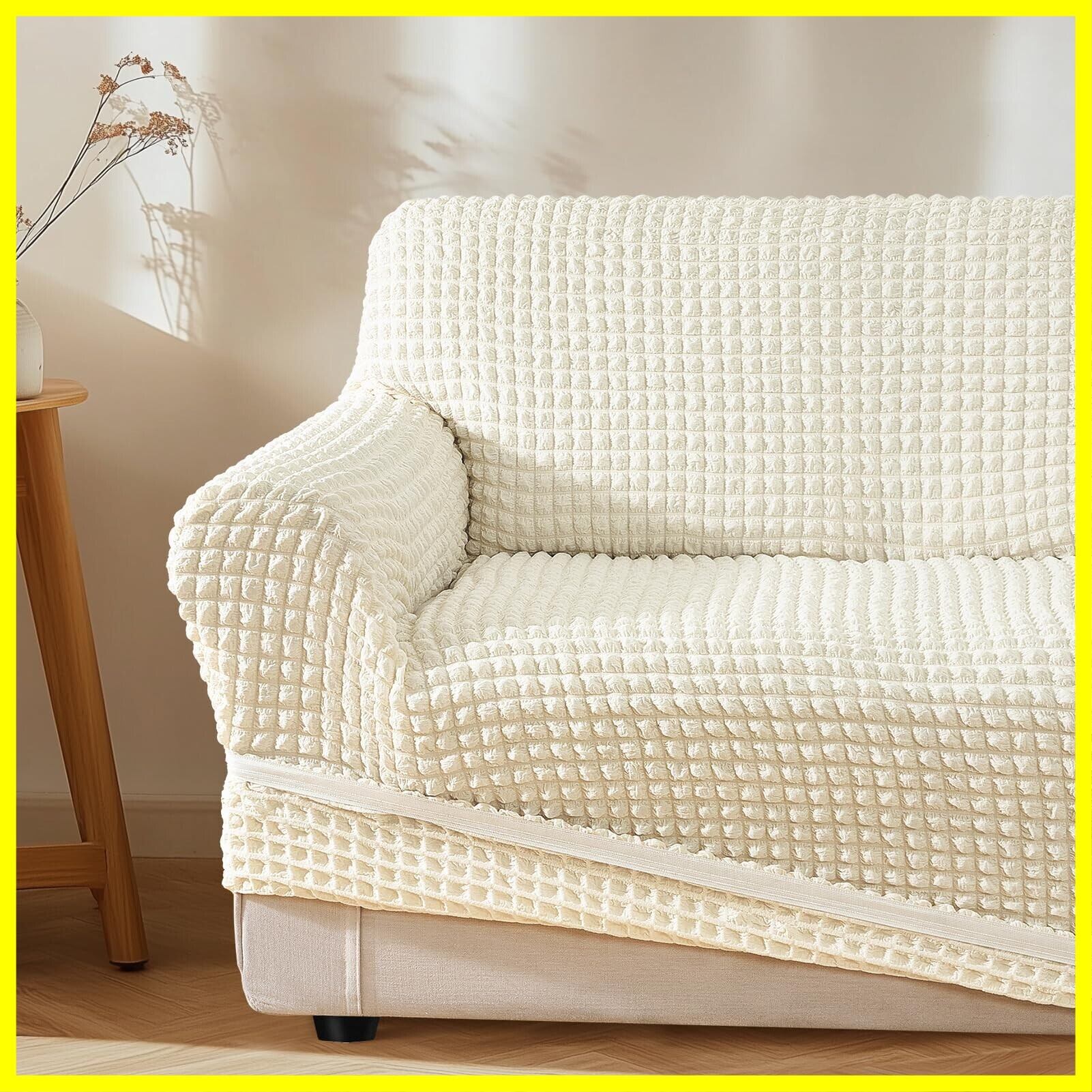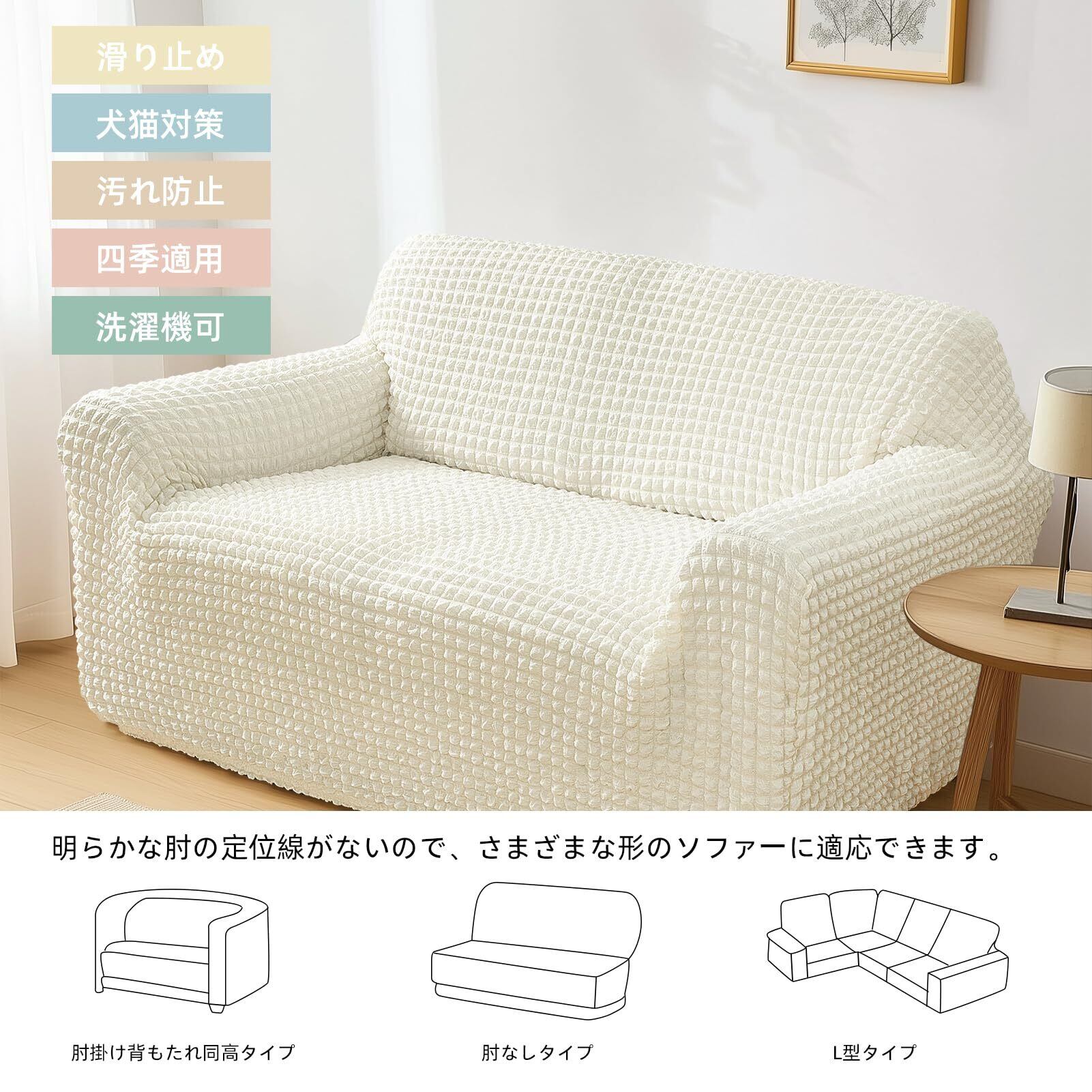 Topfinel ソファーカバー 2人掛け 肘付き クリーム 無地 北欧 滑り止め ストレッチ フィットタイプ 防塵 伸縮素材伸び良く 汚れ 洗える 柔らかい 四季適用