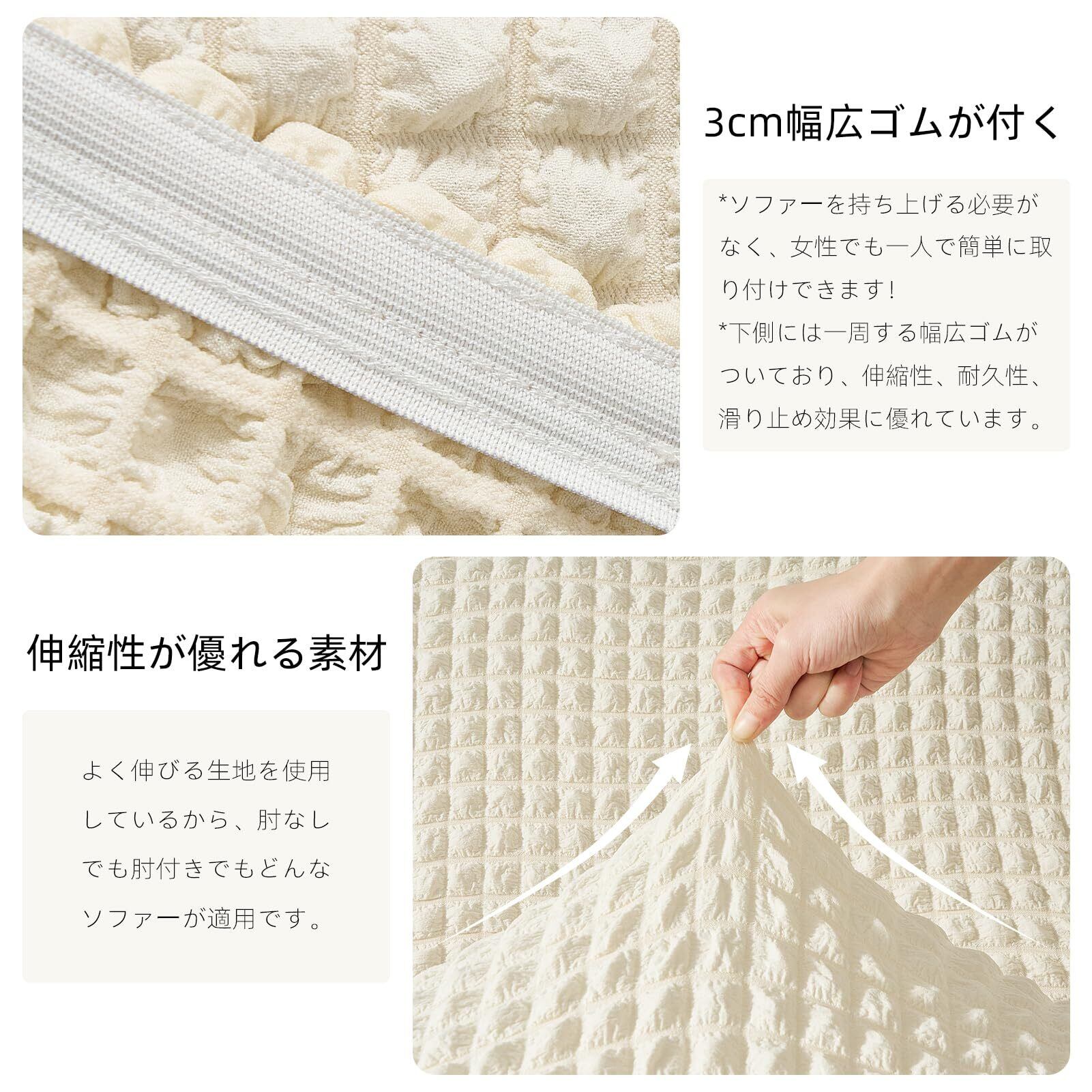 サイズについて:【1人掛け】90-120cm ;【2人掛け】140-190cm ;【3人掛け】185-230cm 。豊富なサイズ展開で、ソファにぴったり合うものをお選びいただけます。ソファー·カバー 肘ありとソファーカバー肘なし、どちらも適応できます。