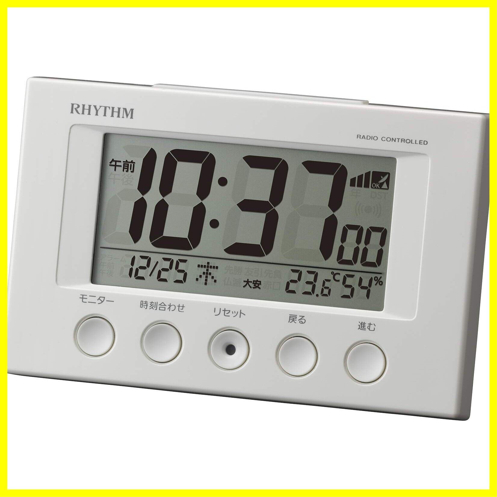 リズム(RHYTHM) 目覚まし時計 電波時計 温度計・湿度計付き フィットウェーブスマート 白 7.7×12×5.4cm 8RZ166SR03